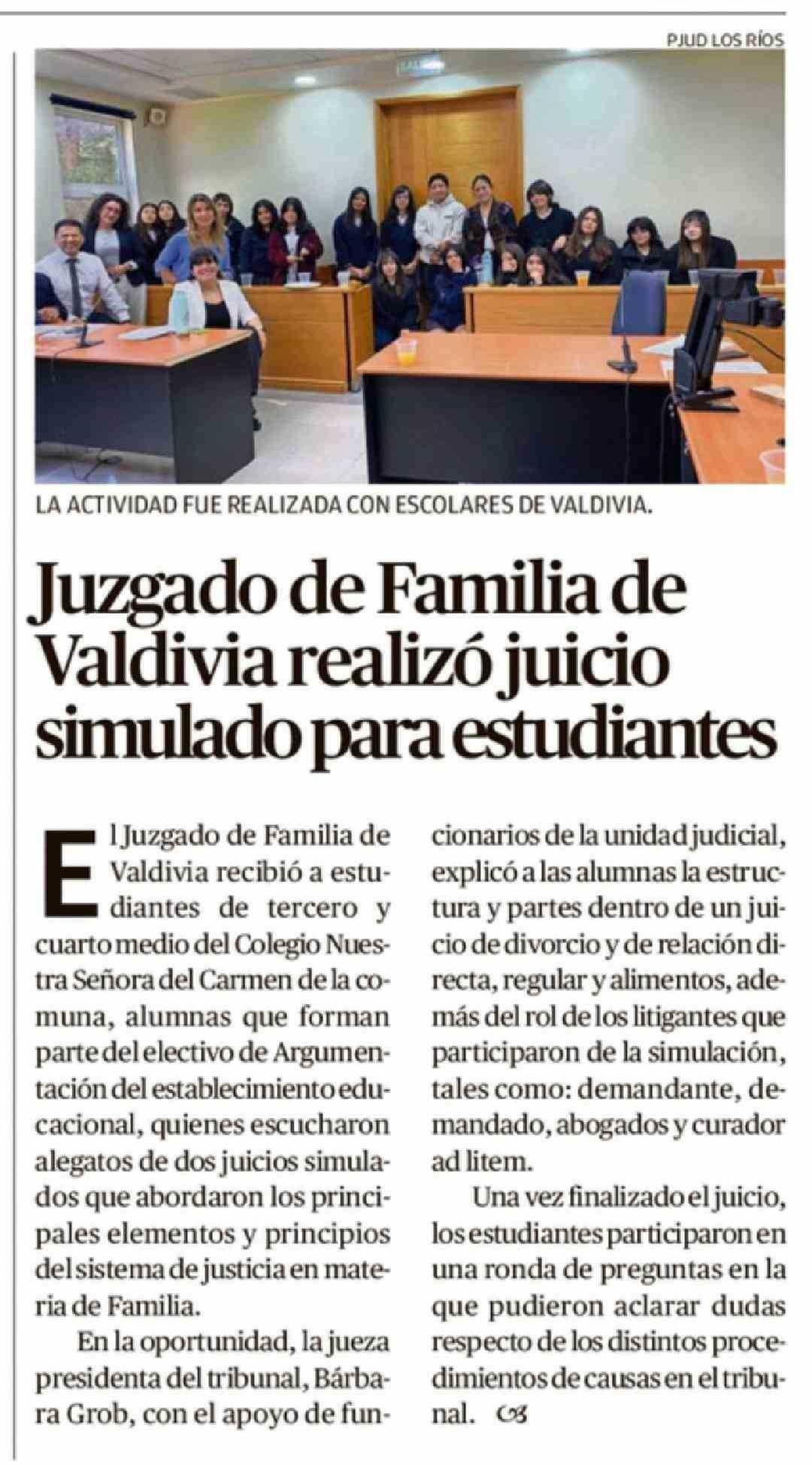 Juzgado de Familia de Valdivia realizó juicio simulado para estudiantes