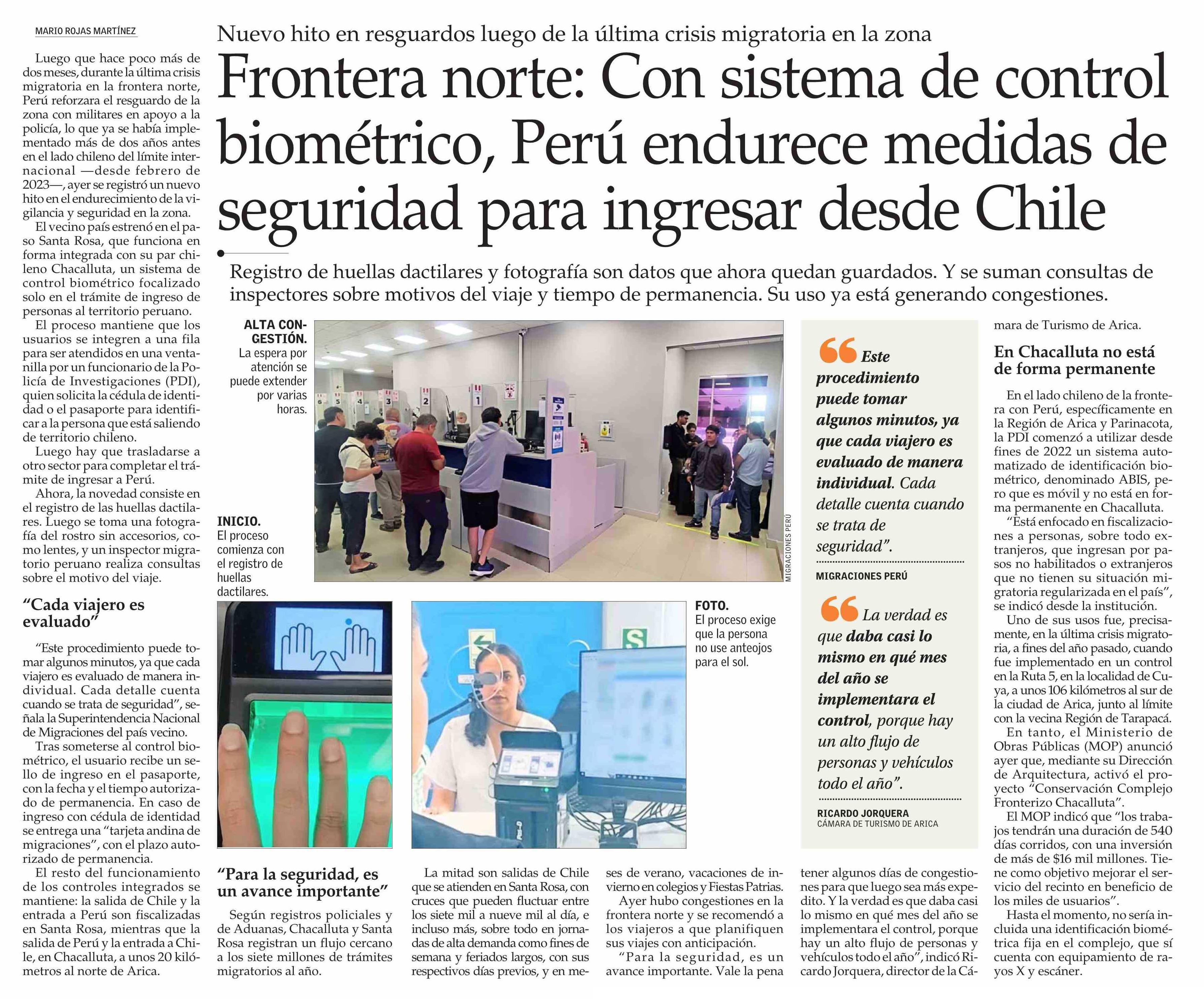 Frontera norte: Con sistema de control biométrico, Perú endurece medidas de seguridad para ingresar desde Chile
