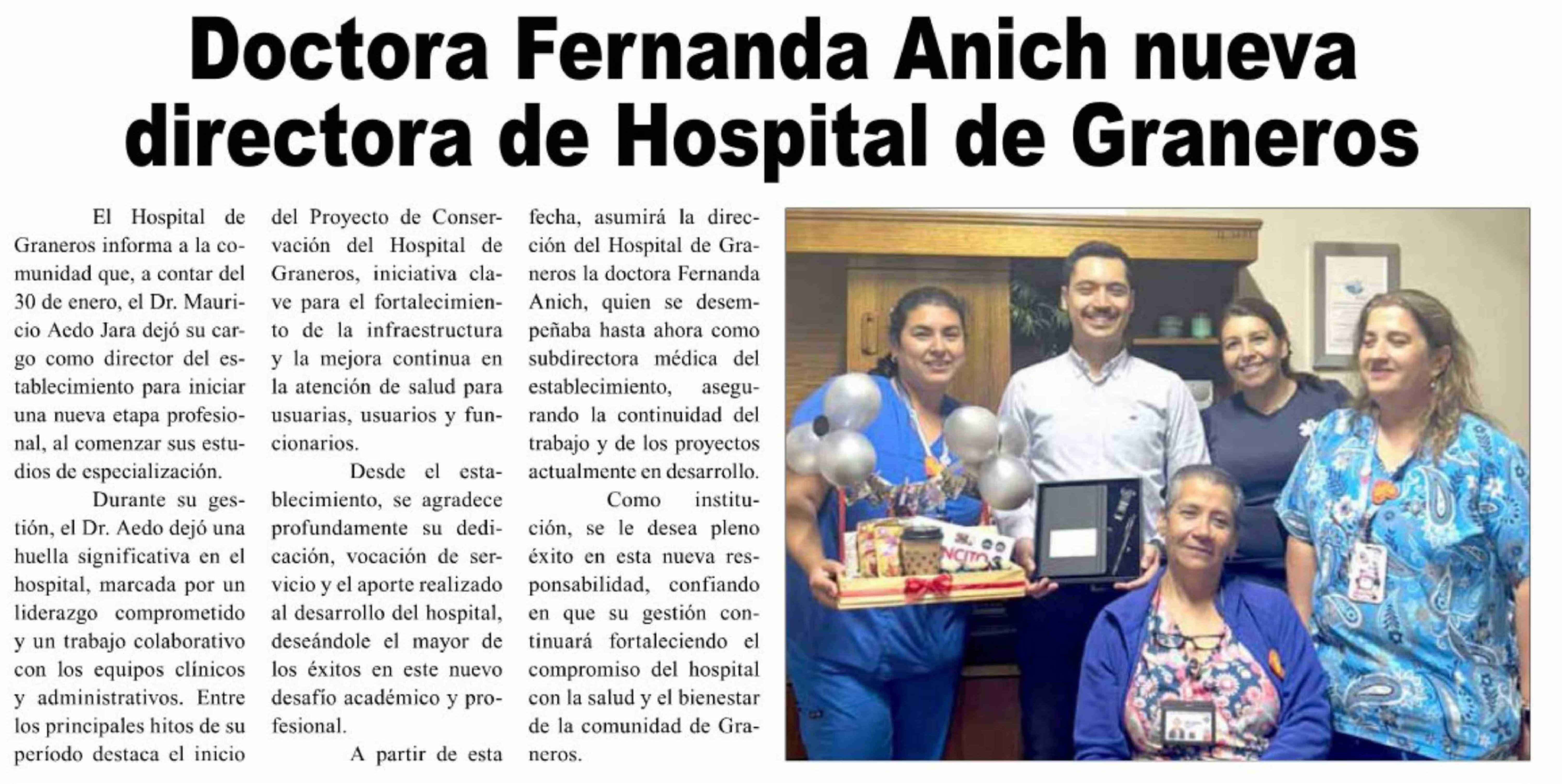 Doctora Fernanda Anich nueva directora de Hospital de Graneros