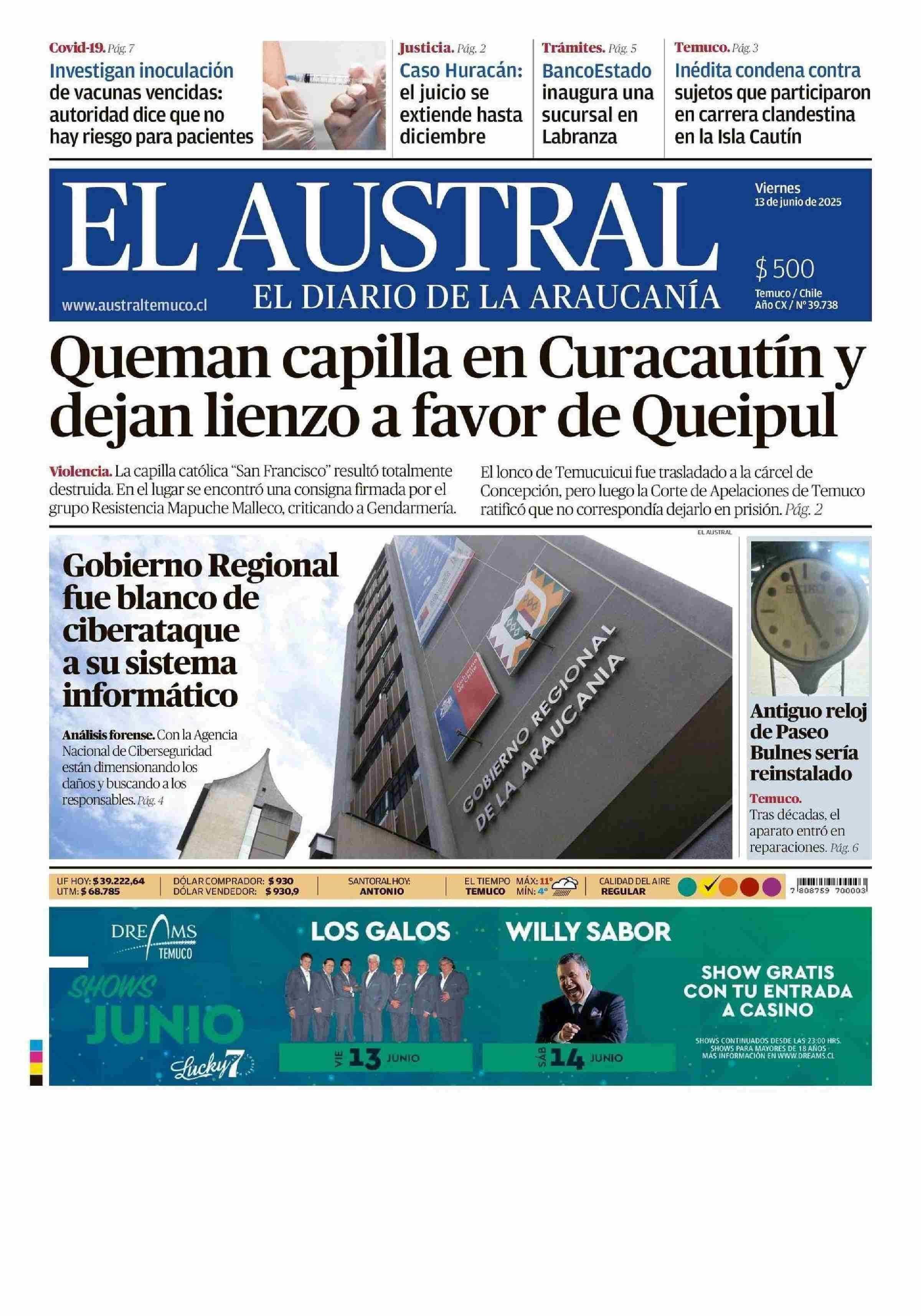 PORTADA EL AUSTRAL DE LA ARAUCANÍA CHILE