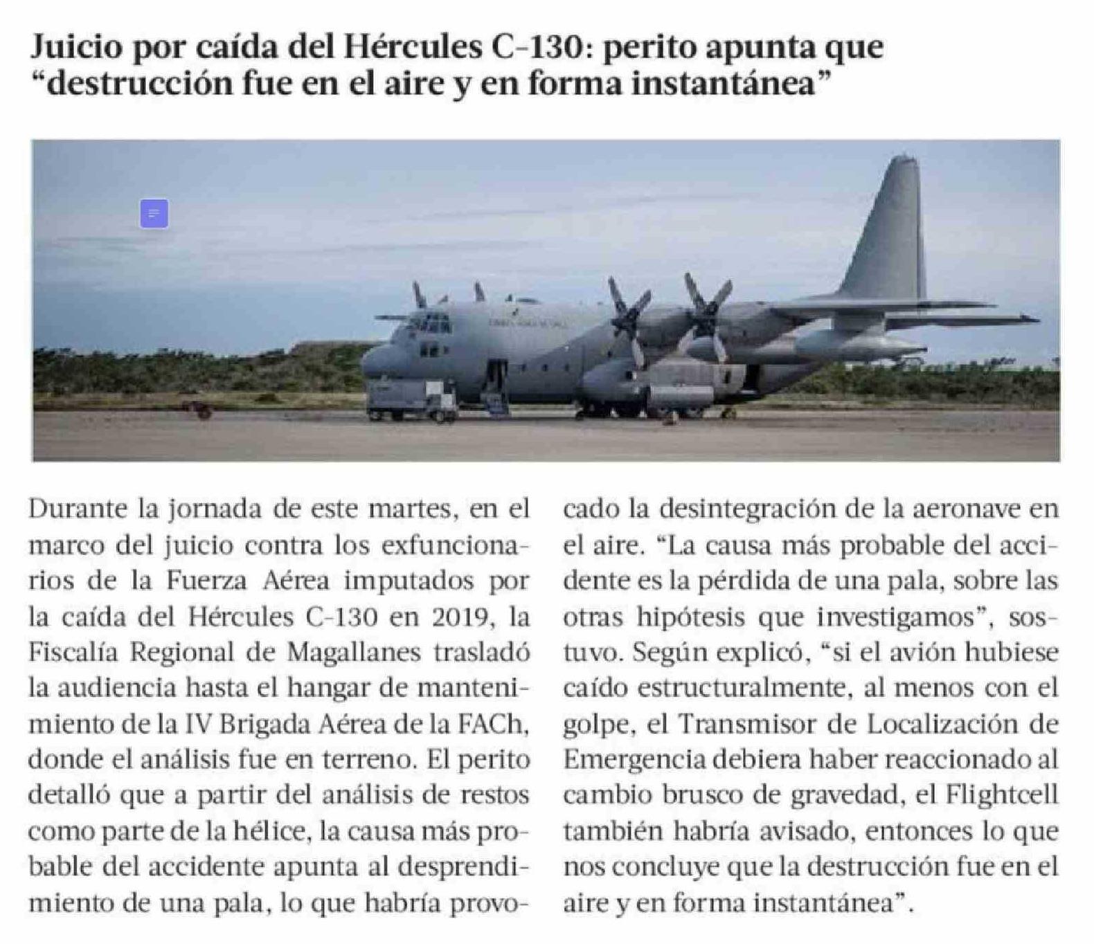 Título: Juicio por caída del Hércules C-130: perito apunta que "destrucción fue en el aire y en forma instantánea"