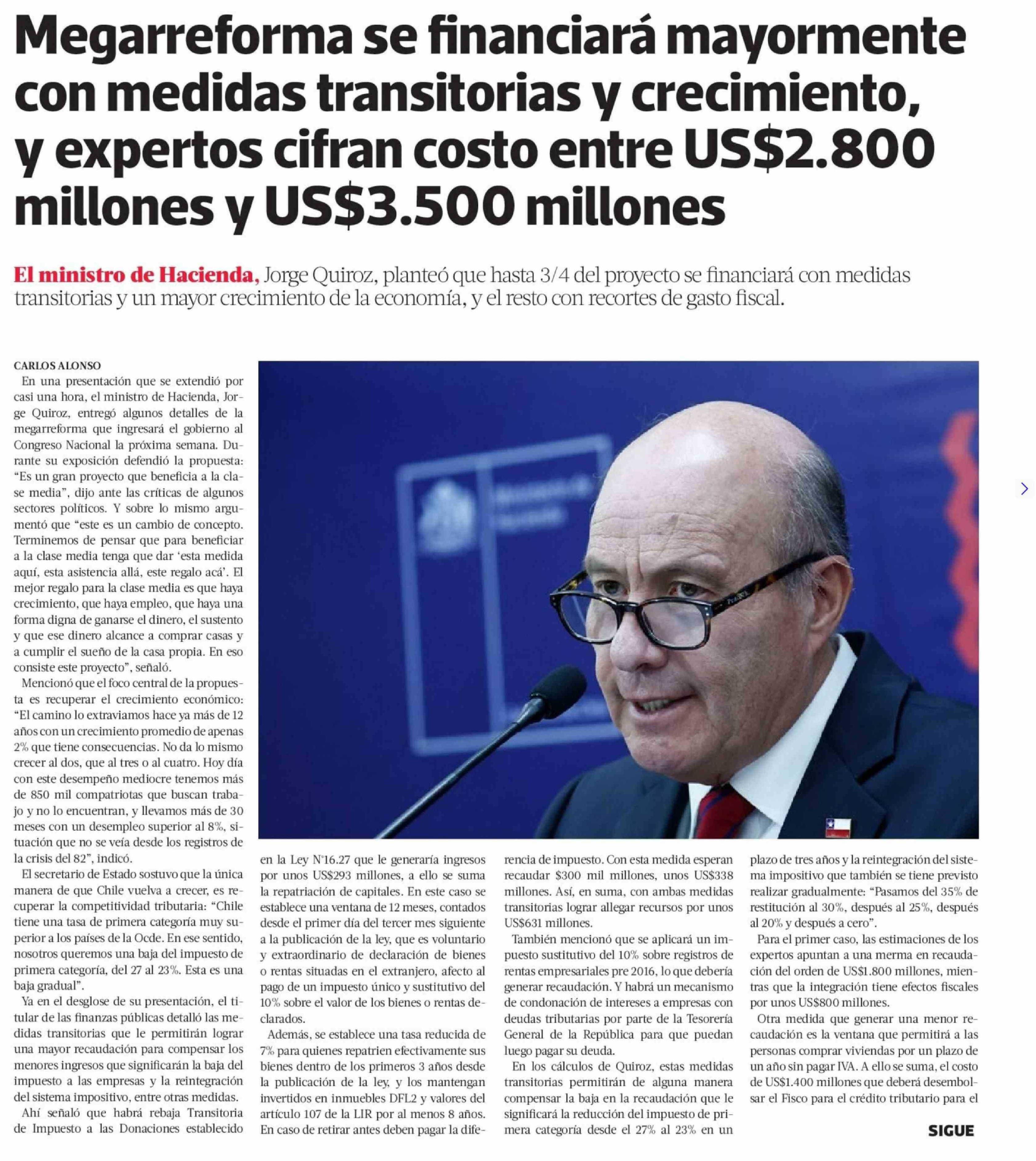Título: Megarreforma se financiará mayormente con medidas transitorias y crecimiento, y expertos cifran costo entre US$2.800 millones y US$3.500 millones