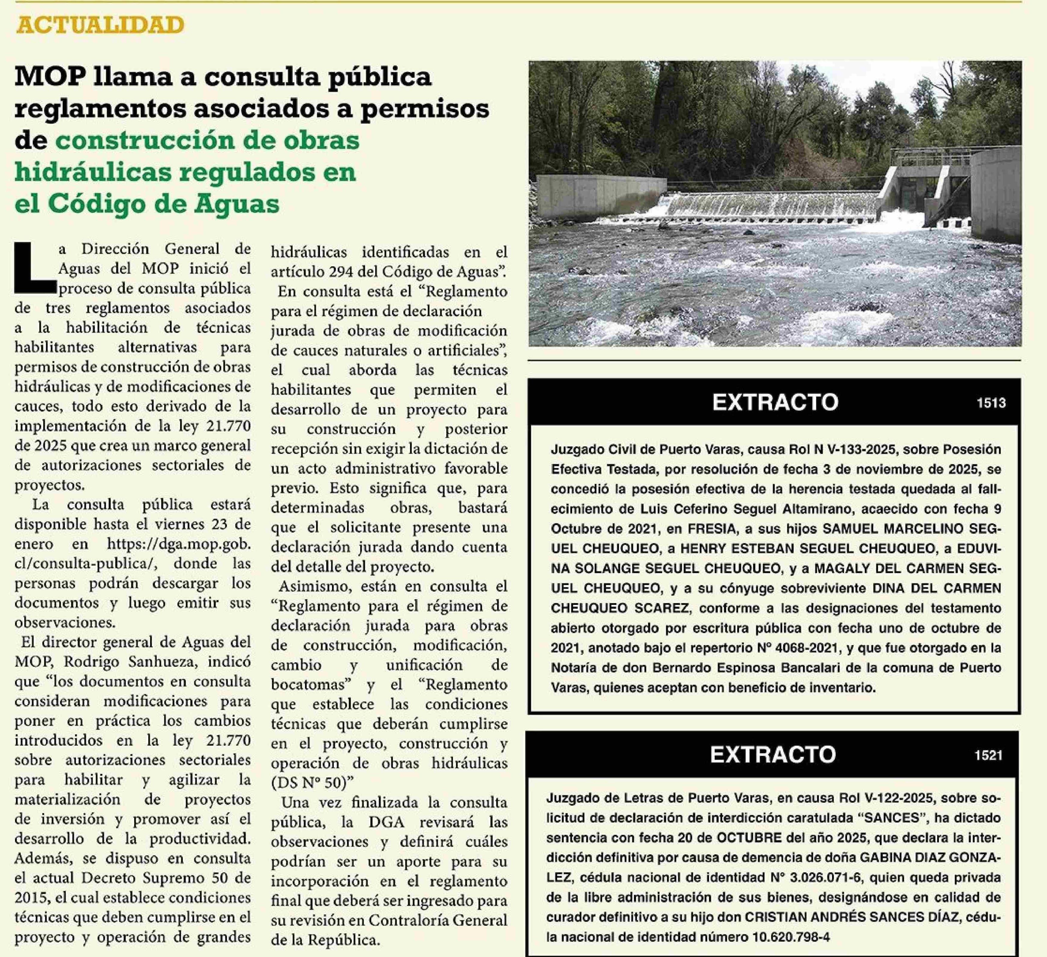 MOP llama a consulta pública reglamentos asociados a permisos de construcción de obras hidráulicas regulados en el Código de Aguas