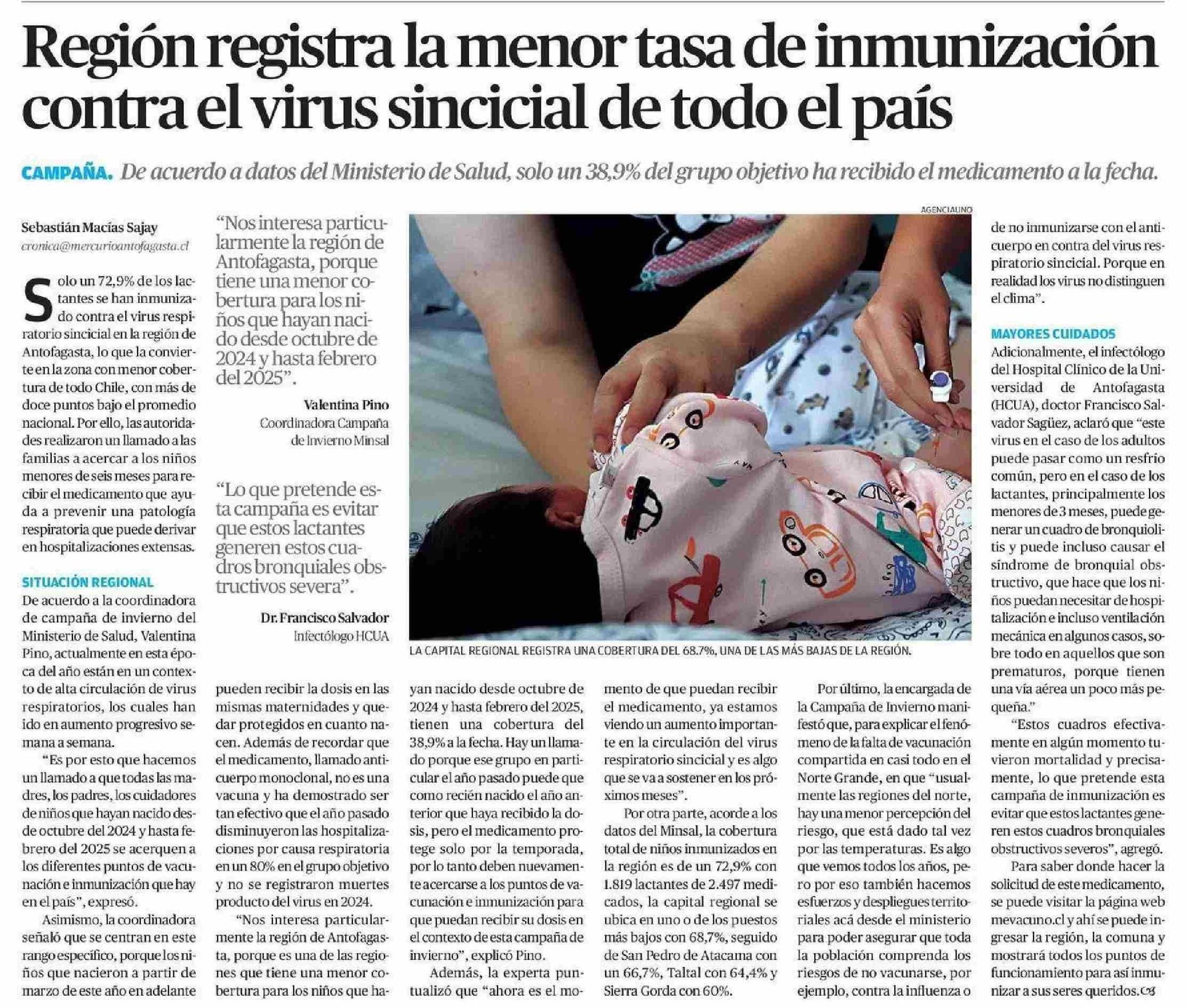 Región registra la menor tasa de inmunización contra el virus sincicial de todo el país