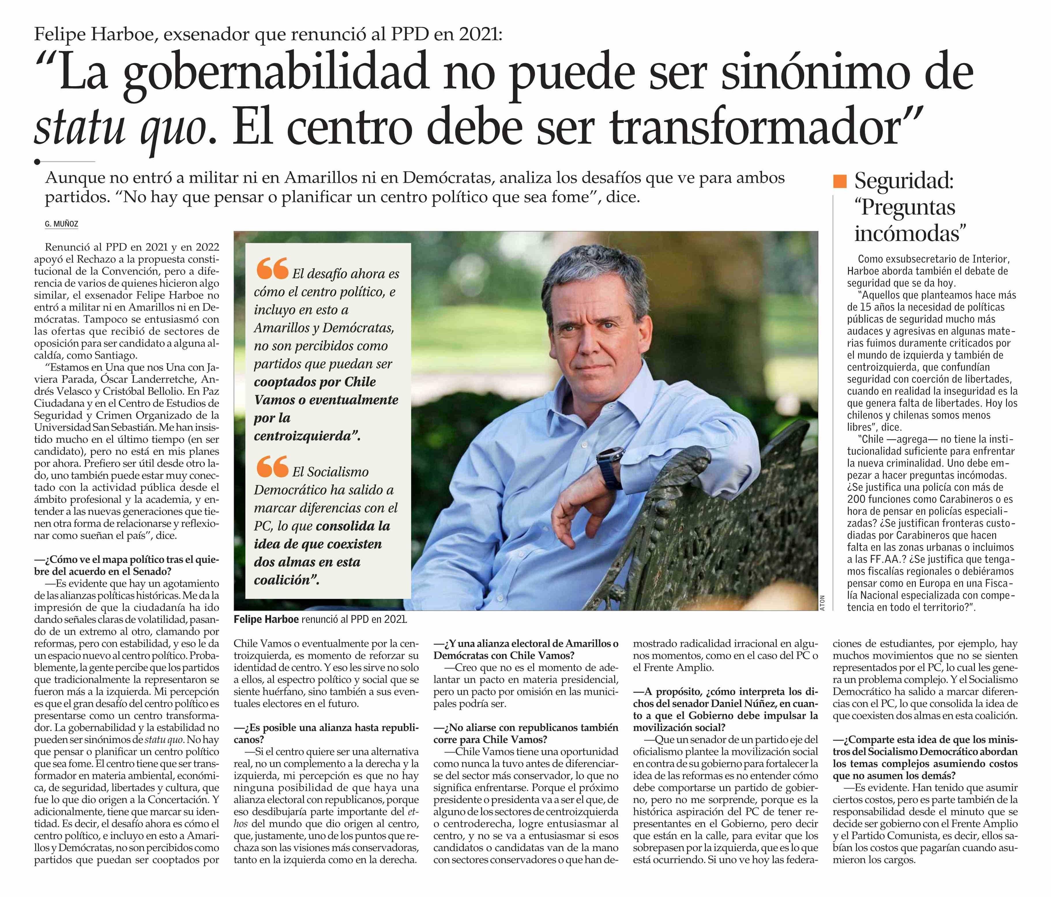 "La gobernabilidad no puede ser sinónimo de statu quo. El centro debe ser transformador"