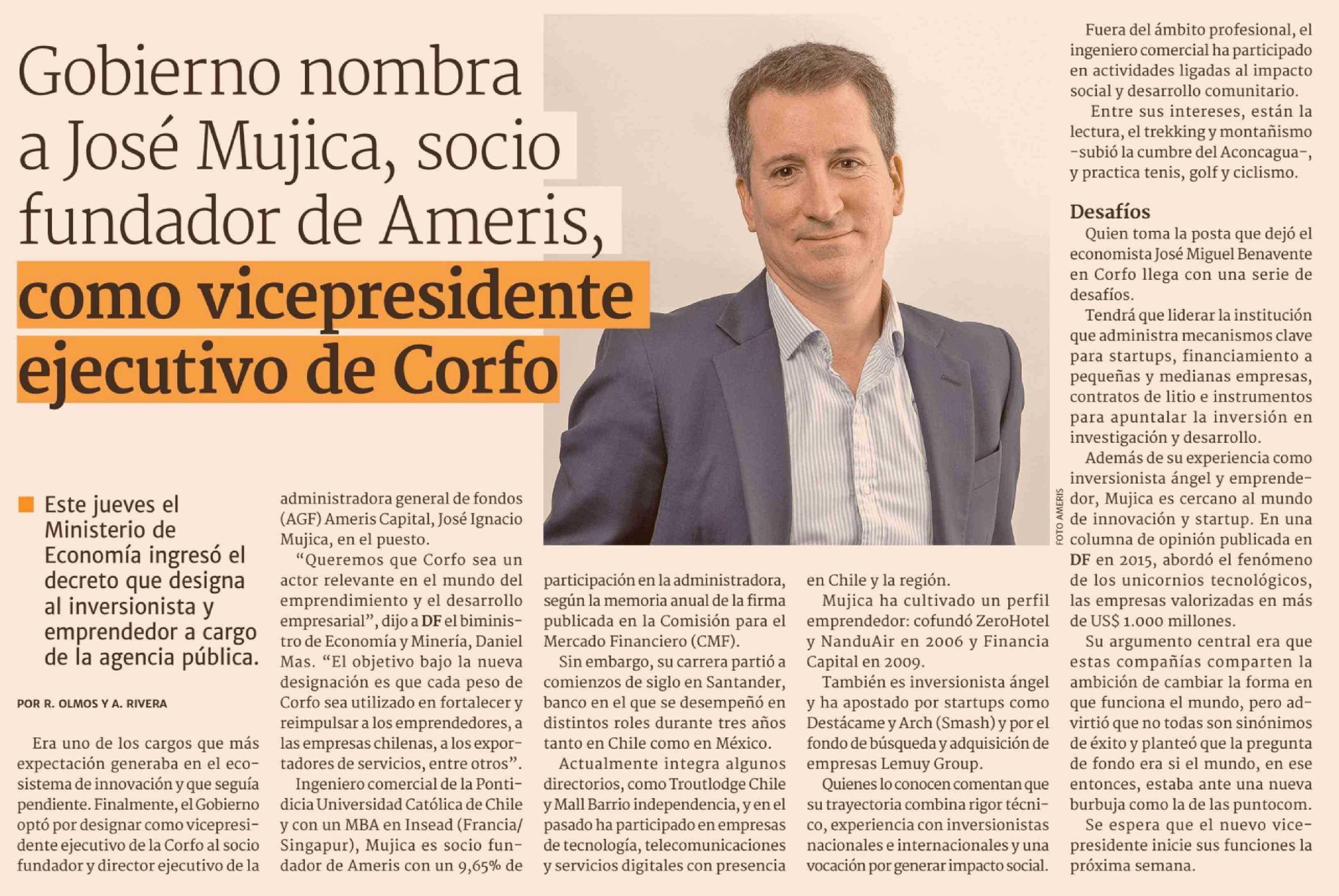 Título: Gobierno nombra a José Mujica, socio fundador de Ameris, como vicepresidente ejecutivo de Corfo