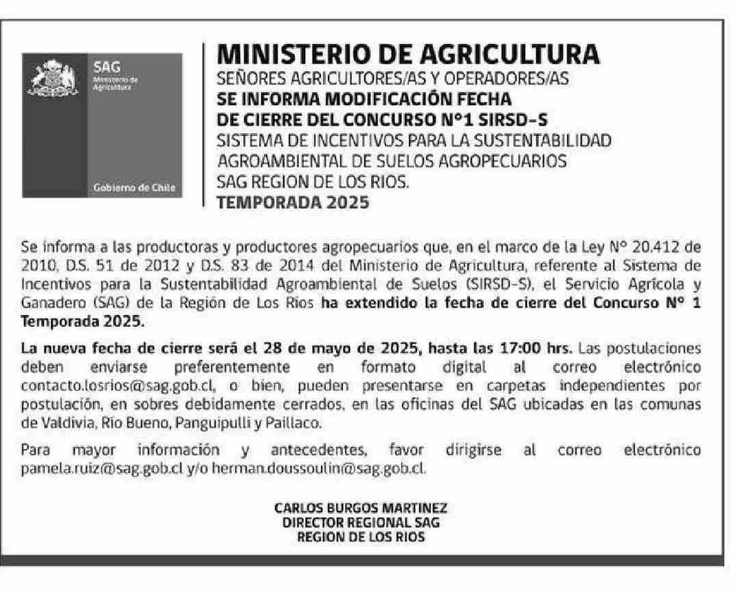 AVISO LICITACIONES: MINISTERIO DE AGRICULTURA