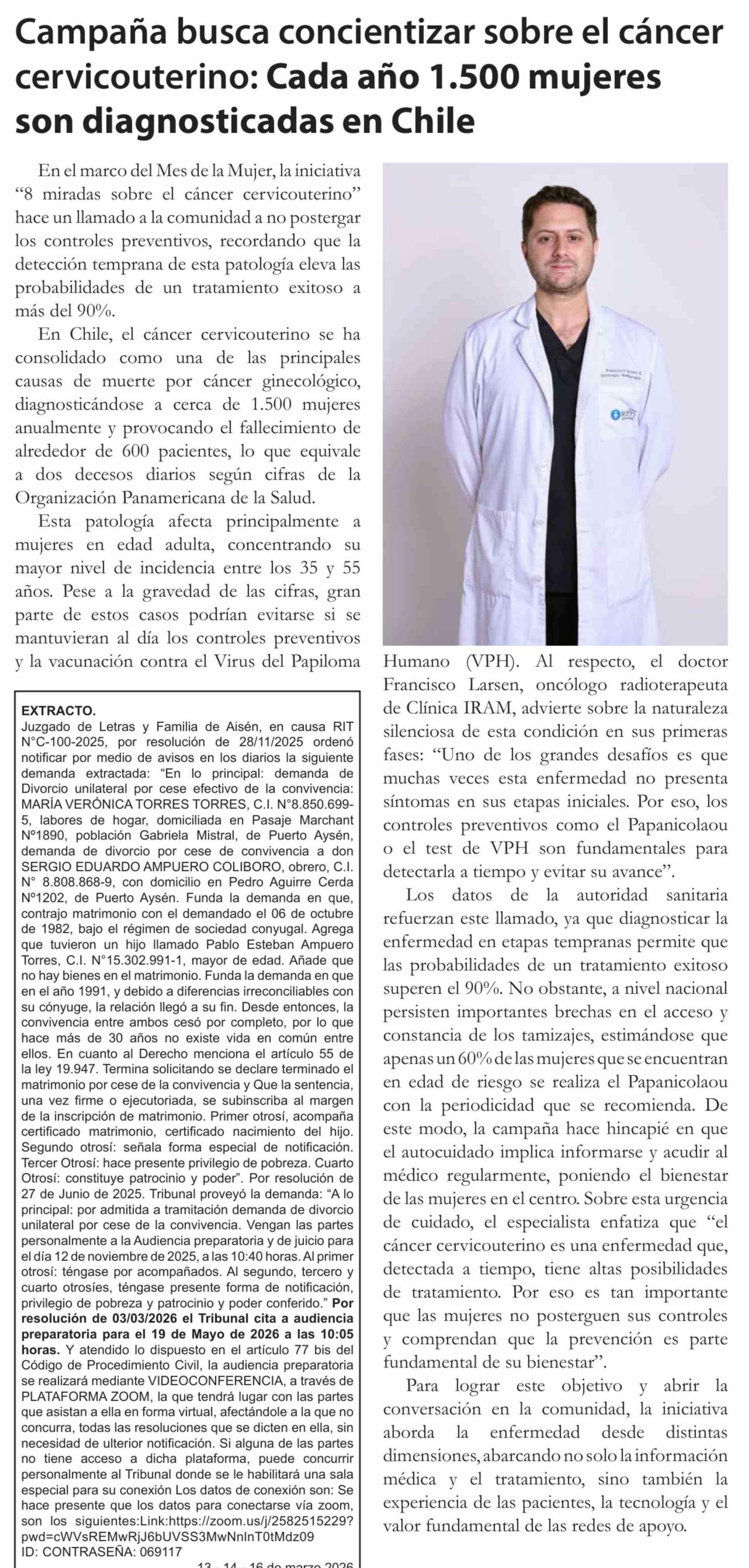 Campaña busca concientizar sobre el cáncer cervicouterino: Cada año 1.500 mujeres son diagnosticadas en Chile