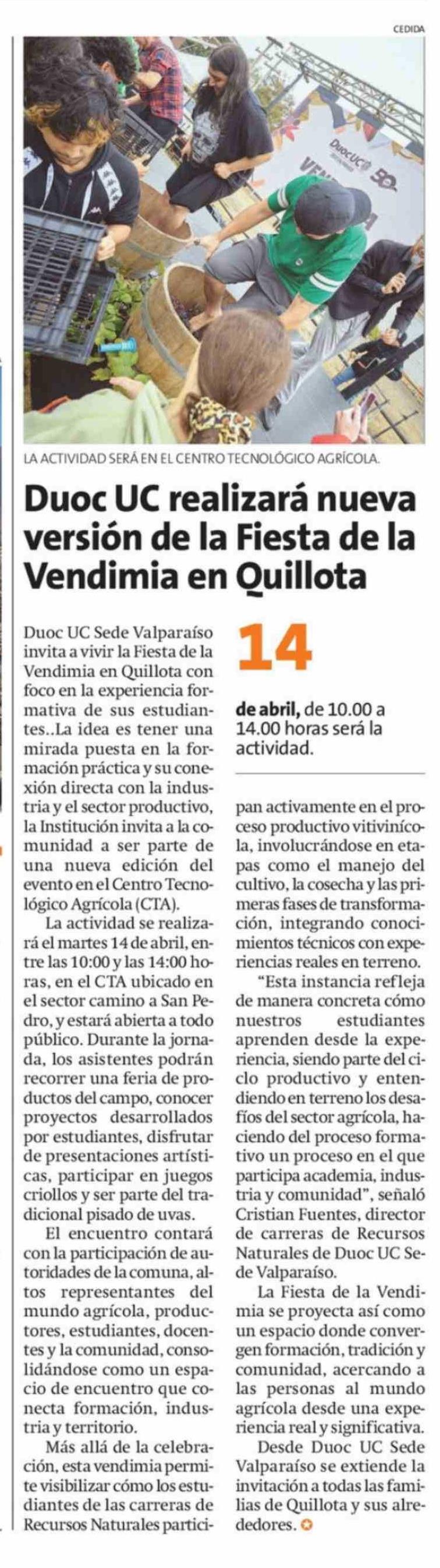 Duoc UC realizará nueva versión de la Fiesta de la Vendimia en Quillota