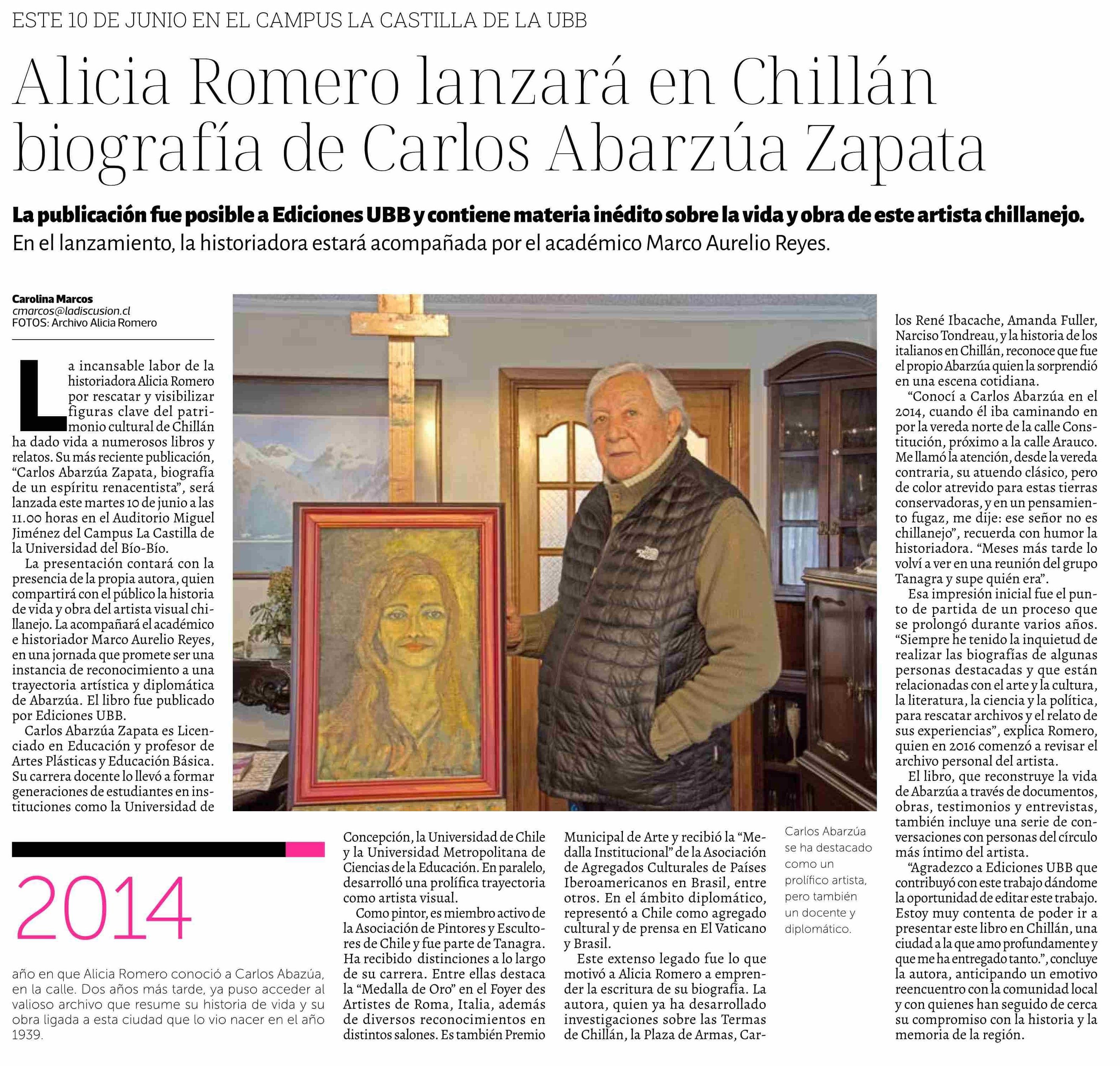 Alicia Romero lanzará en Chillán biografía de Carlos Abarzúa Zapata