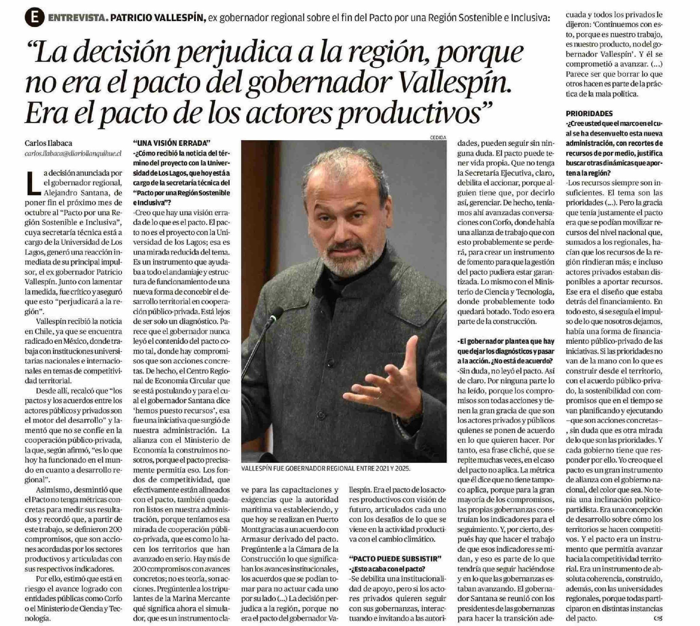“La decisión perjudica a la región, porque no era el pacto del gobernador Vallespín. Era el pacto de los actores productivos”