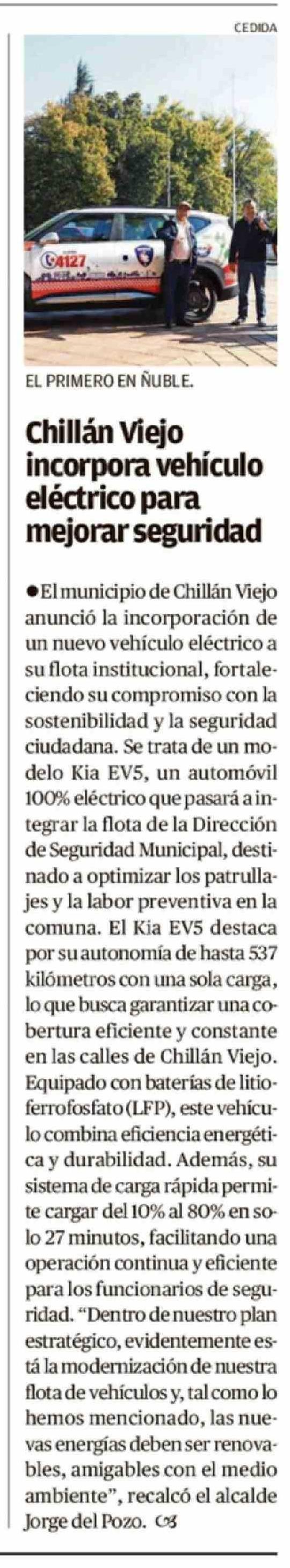 Chillán Viejo incorpora vehículo eléctrico para mejorar seguridad