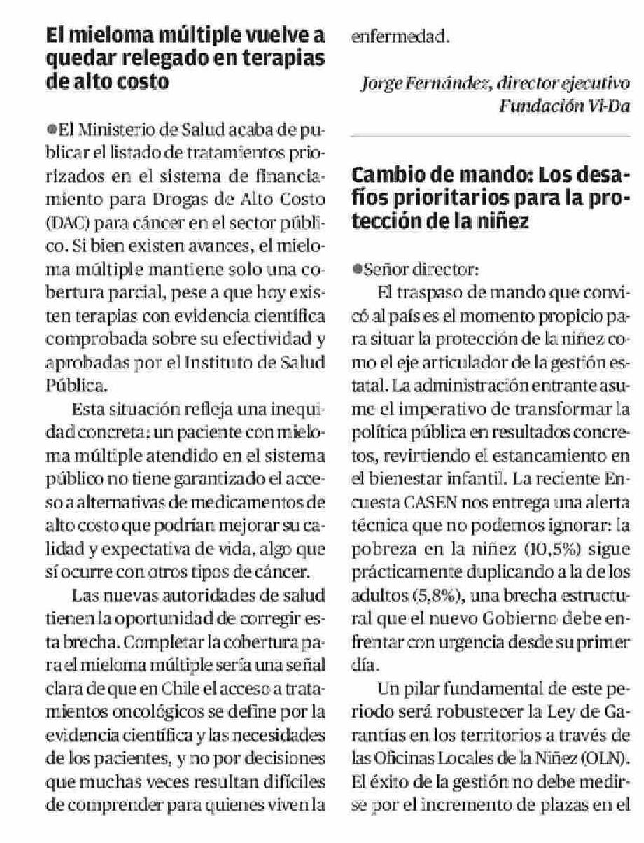CARTAS: El mieloma múltiple vuelve a quedar relegado en terapias dealto costo