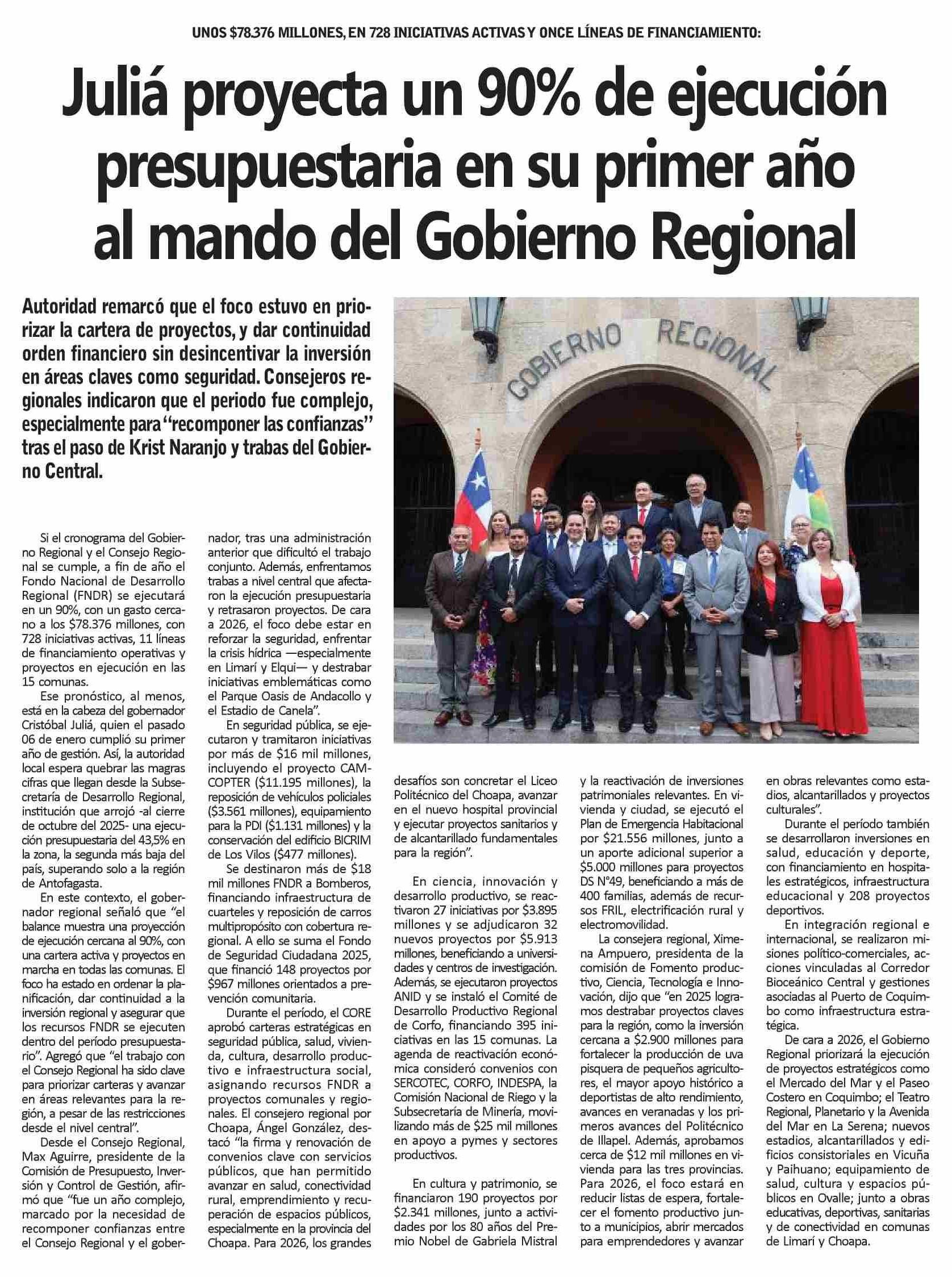 Juliá proyecta un 90% de ejecución presupuestaria en su primer año al mando del Gobierno Regional