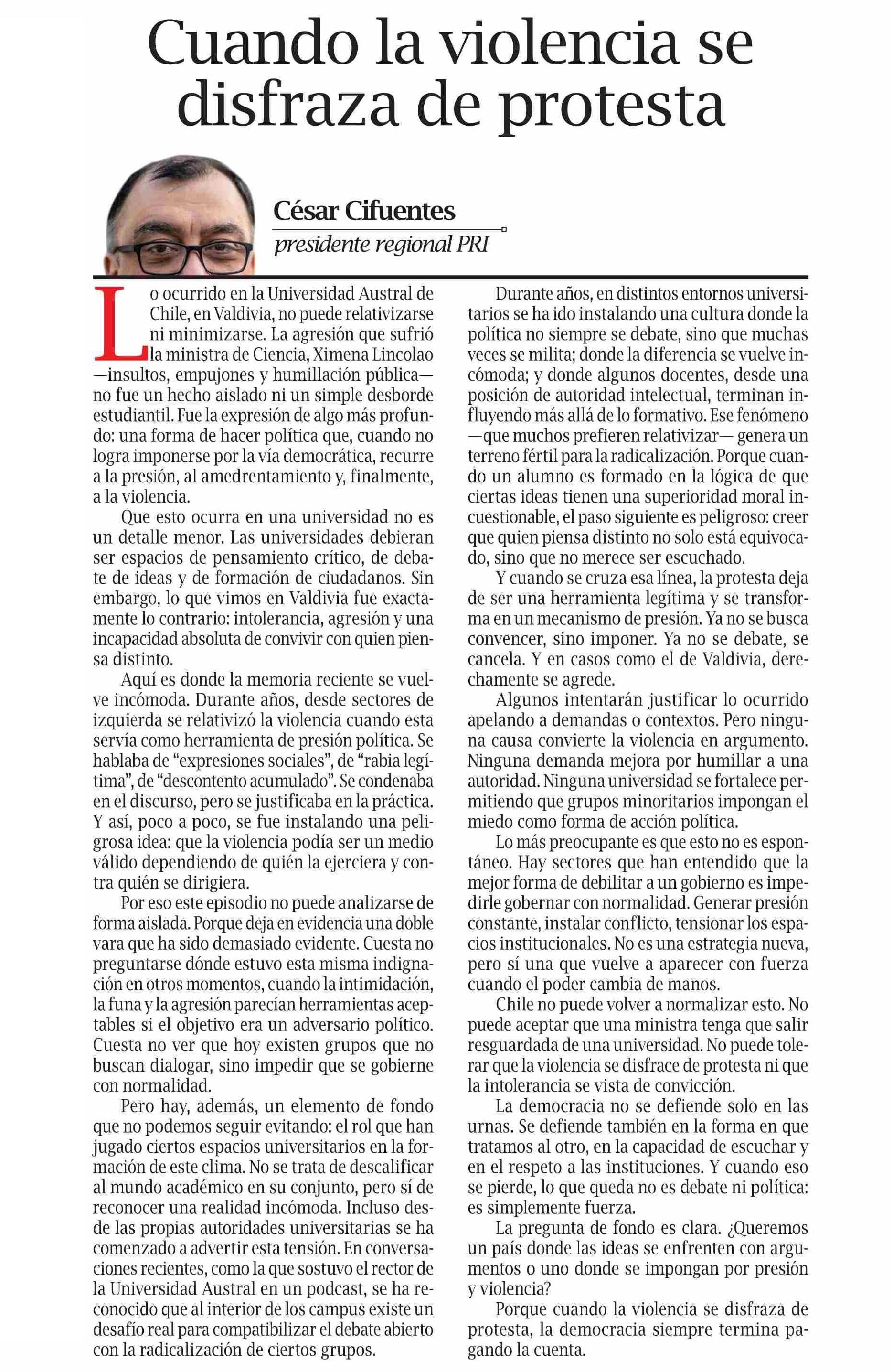 COLUMNAS DE OPINIÓN: Cuando la violencia se disfraza de protesta