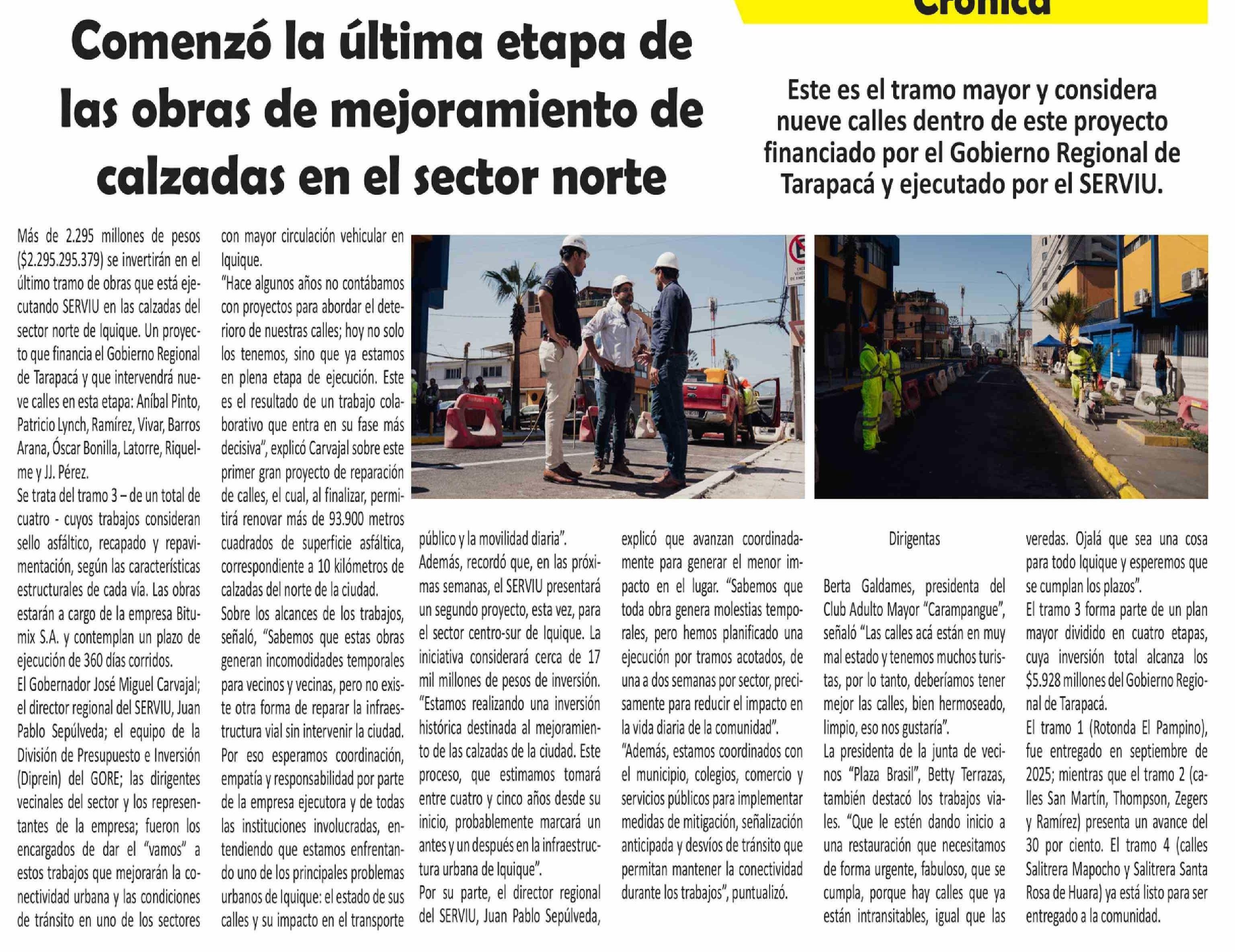 Comenzó la última etapa de las obras de mejoramiento de calzadas en el sector norte
