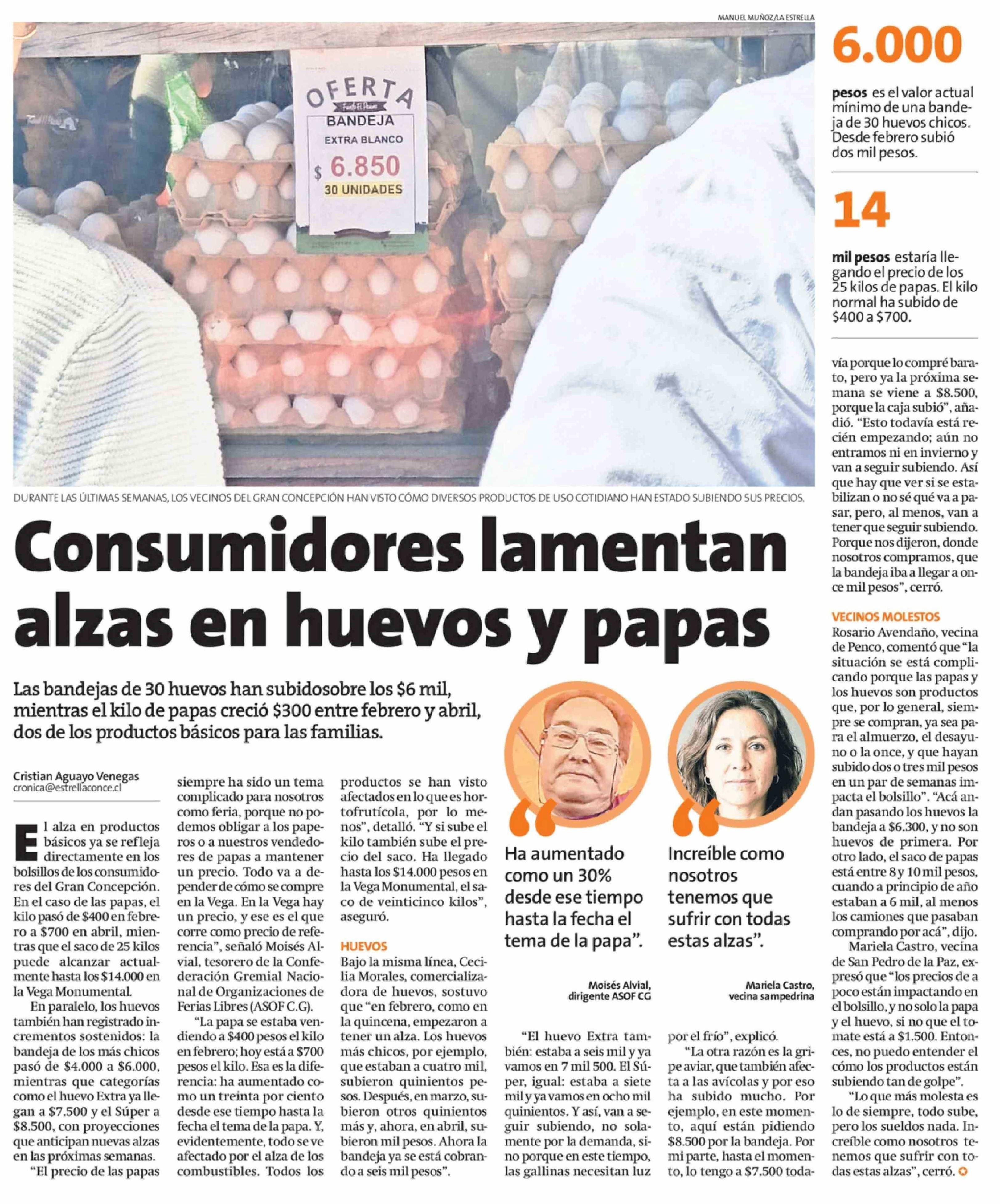 Consumidores lamentan alzas en huevos y papas