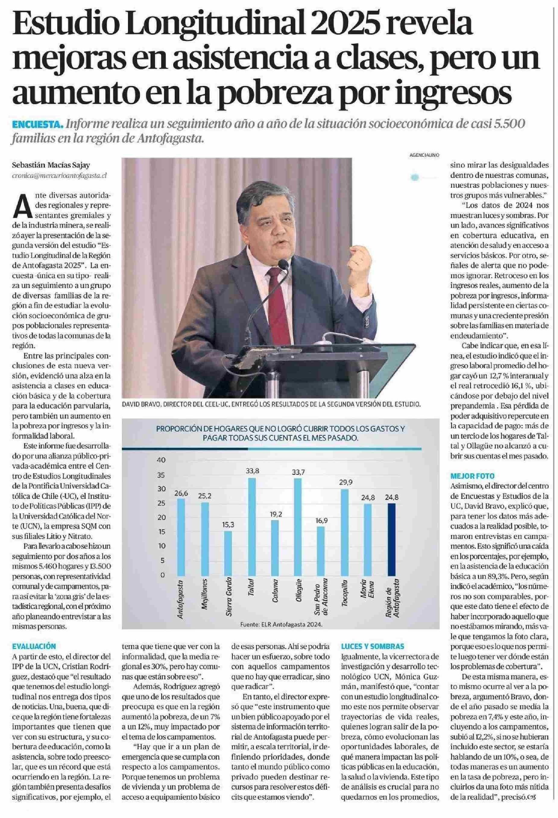 Estudio Longitudinal 2025 revela mejoras en asistencia a clases, pero un aumento en la pobreza por ingresos