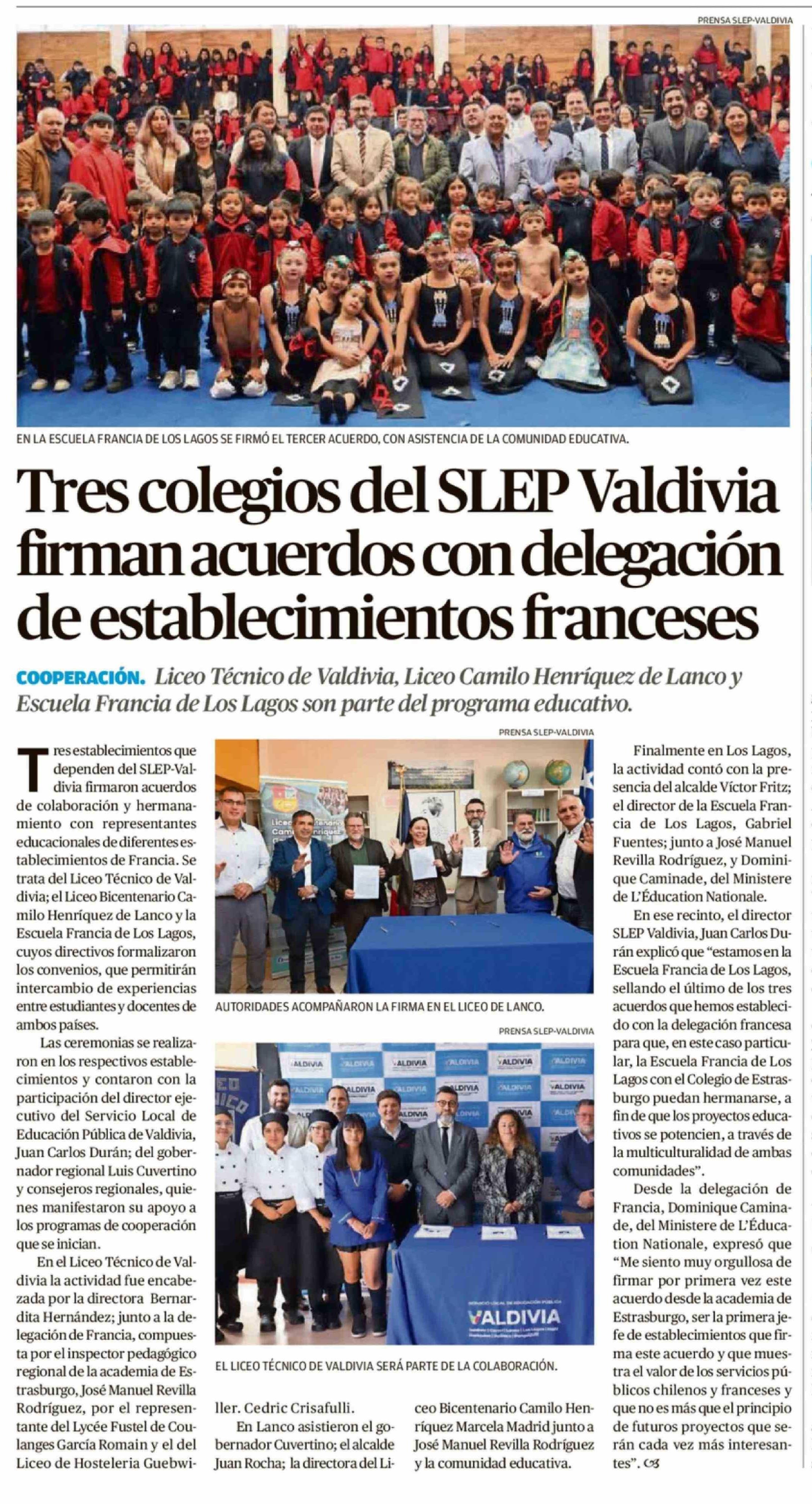 Tres colegios del SLEP Valdivia firman acuerdos con delegación de establecimientos franceses