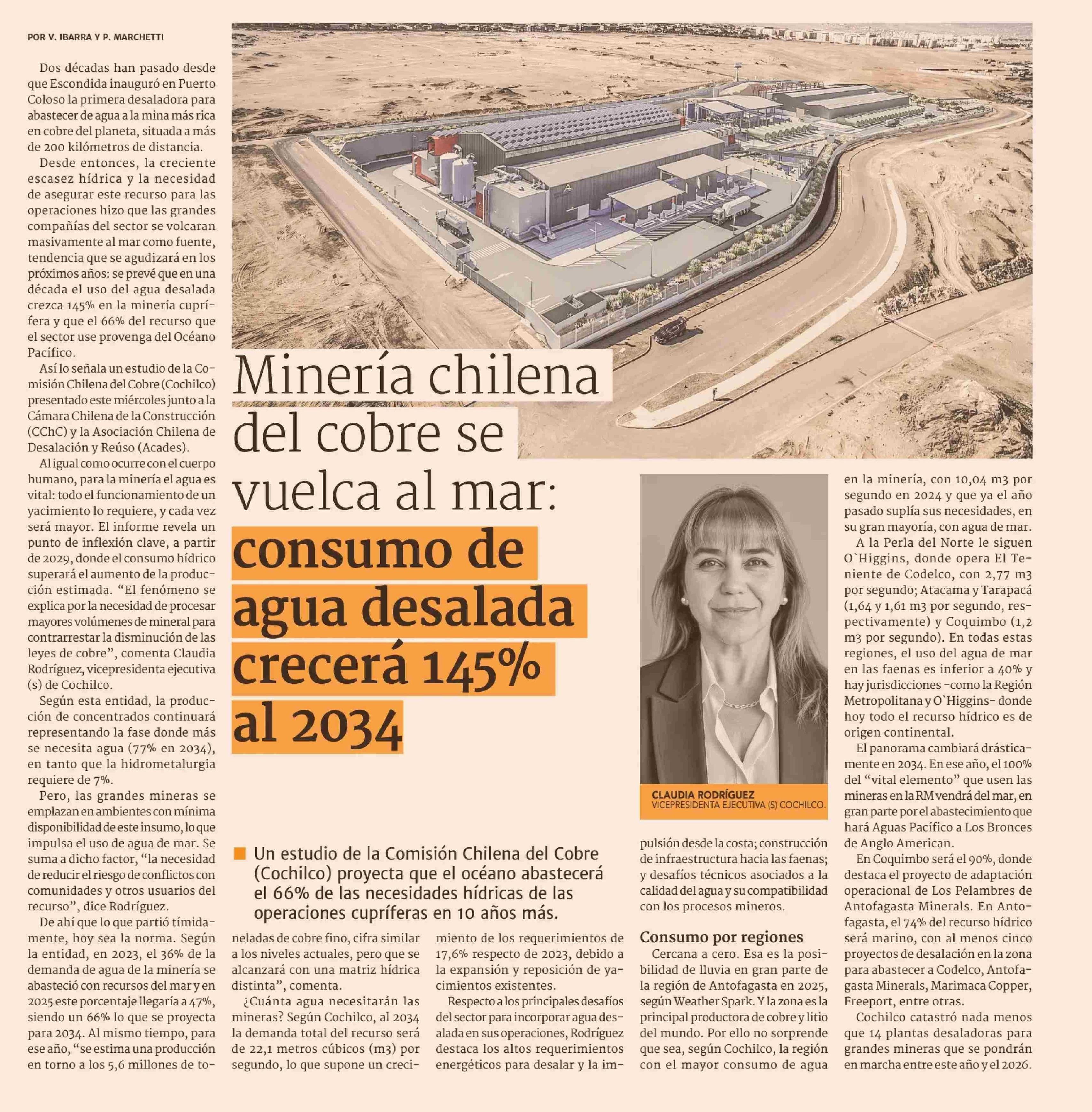 Minería chilena del cobre se vuelca al mar: consumo de agua desalada crecerá 145% al 2034