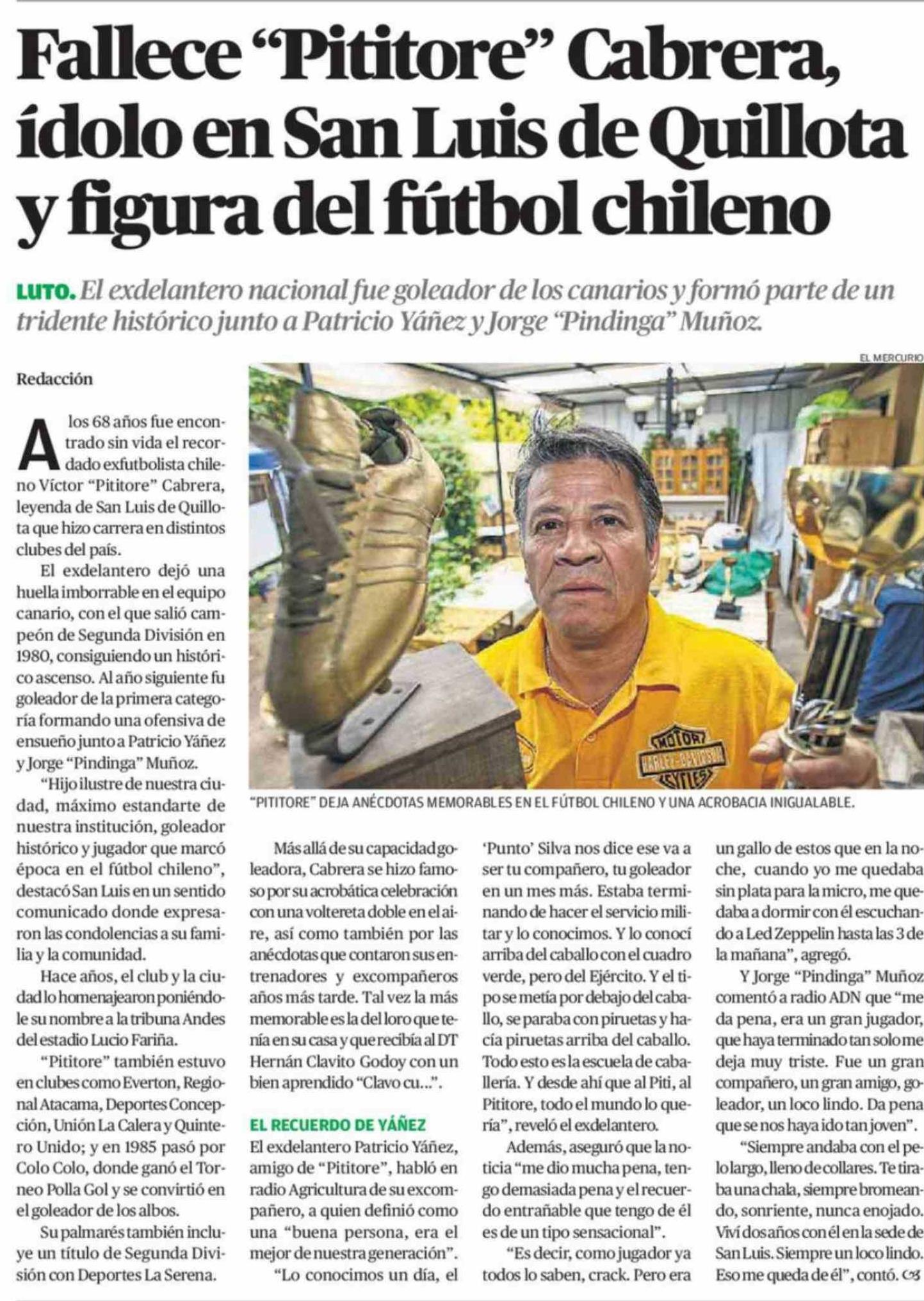 Fallece “Pititore” Cabrera, ídolo en San Luis de Quillota y figura del fútbol chileno