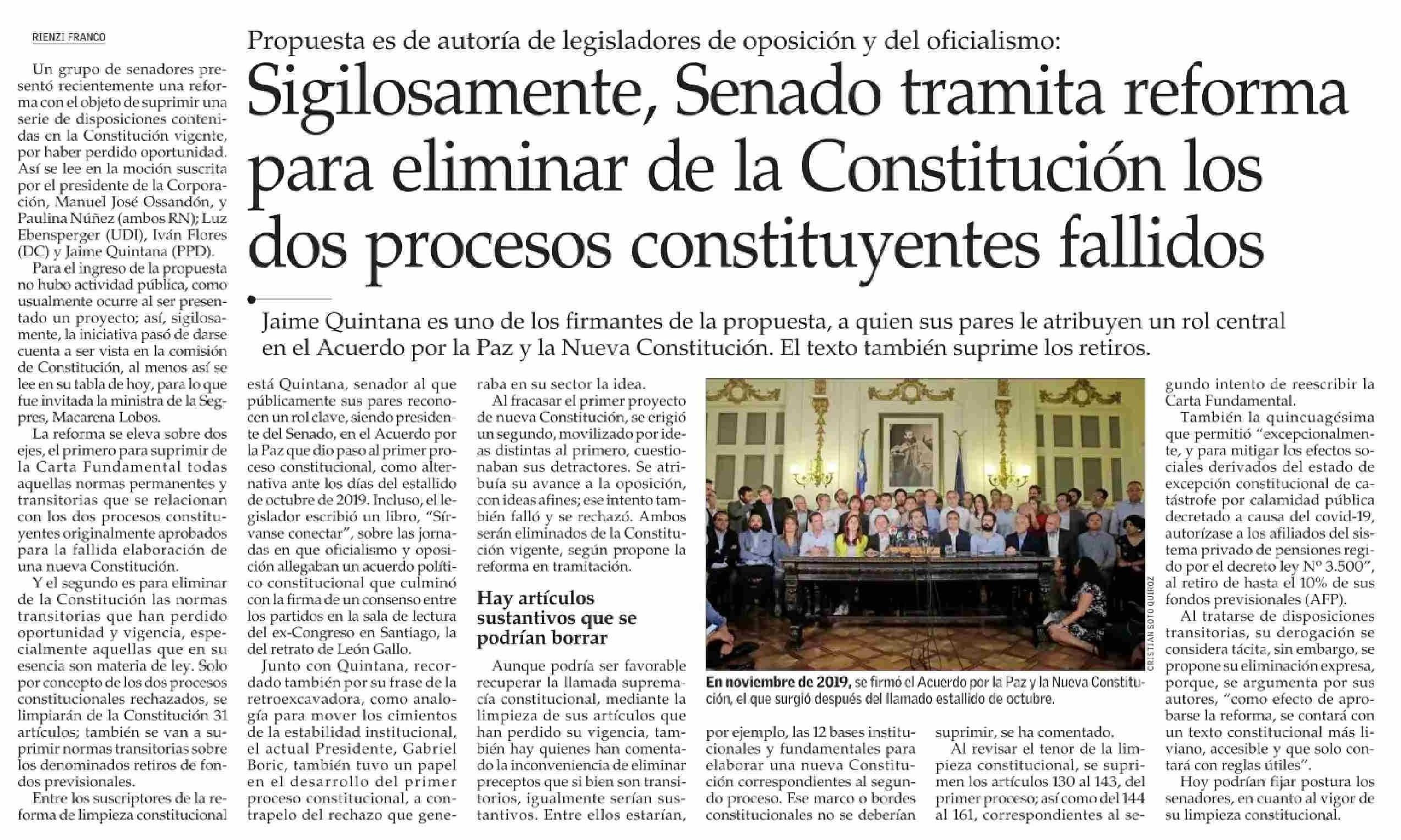Sigilosamente, Senado tramita reforma para eliminar de la Constitución los dos procesos constituyentes fallidos