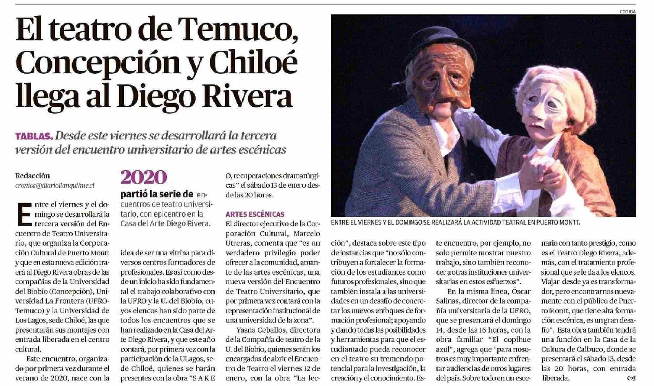 El teatro de Temuco, Concepción y Chiloé llega al Diego Rivera