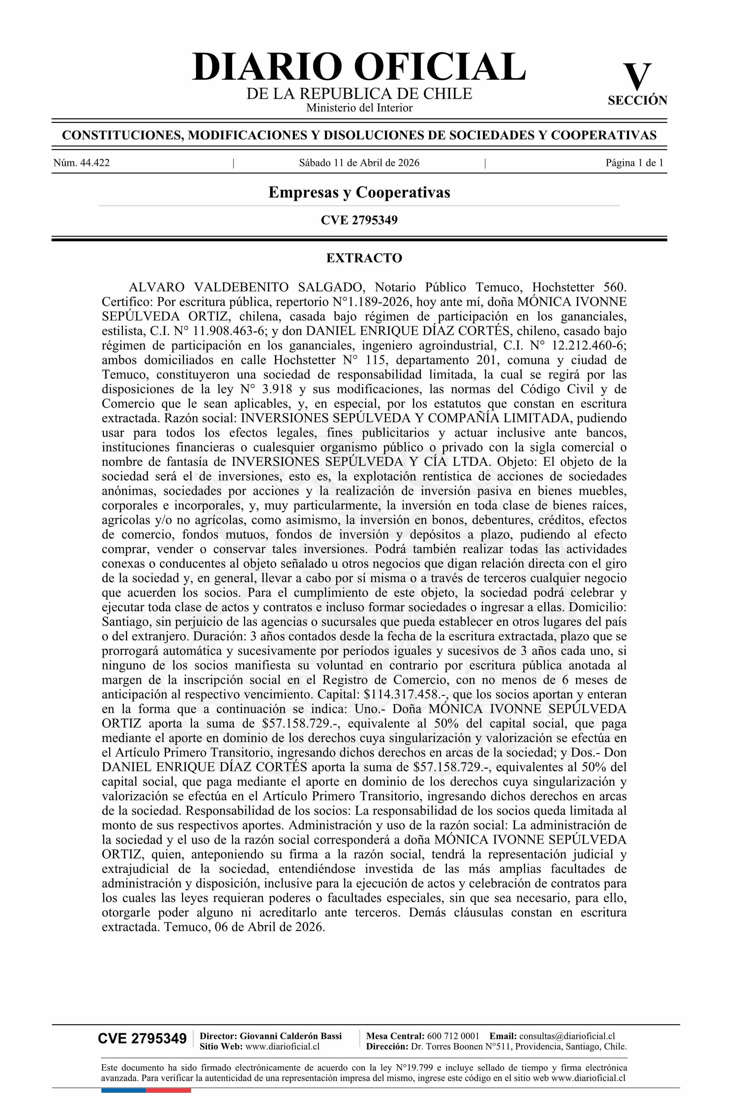 INVERSIONES SEPÚLVEDA Y COMPAÑÍA LIMITADA