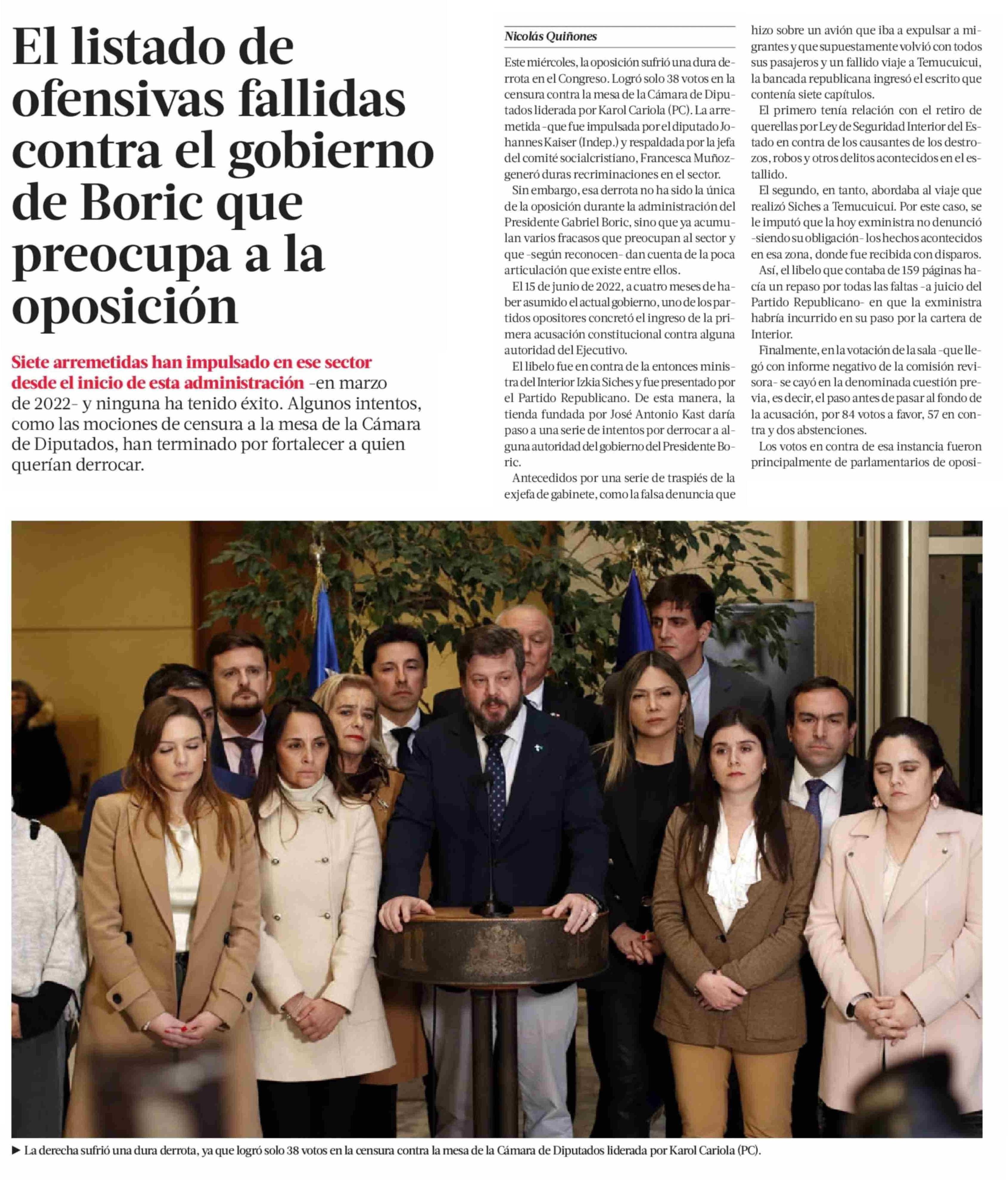 El listado de ofensivas fallidas contra el gobierno de Boric que preocupa a la oposición