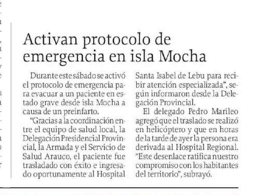 Activan protocolo de emergencia en isla Mocha