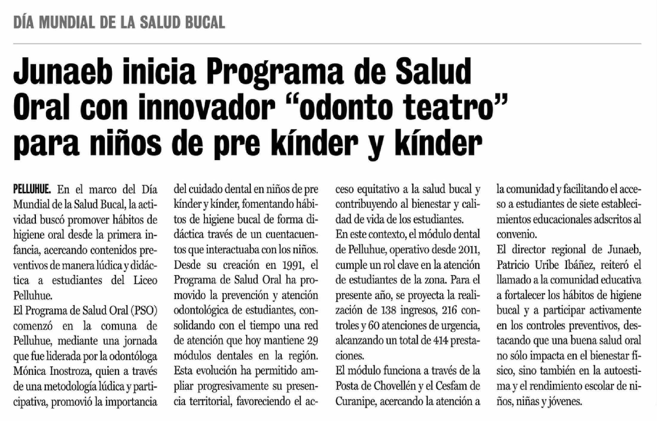 Junaeb inicia Programa de Salud Oral con innovador "odonto teatro" para niños de pre kinder y kinder