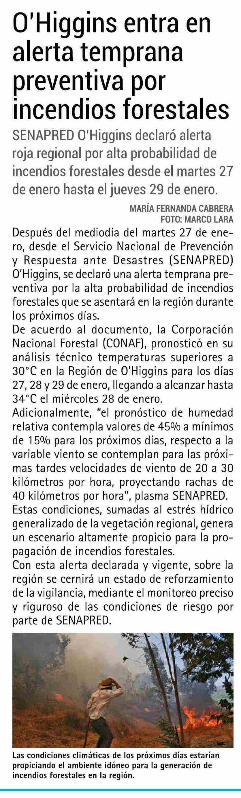 O'Higgins entra en alerta temprana preventiva por incendios forestales