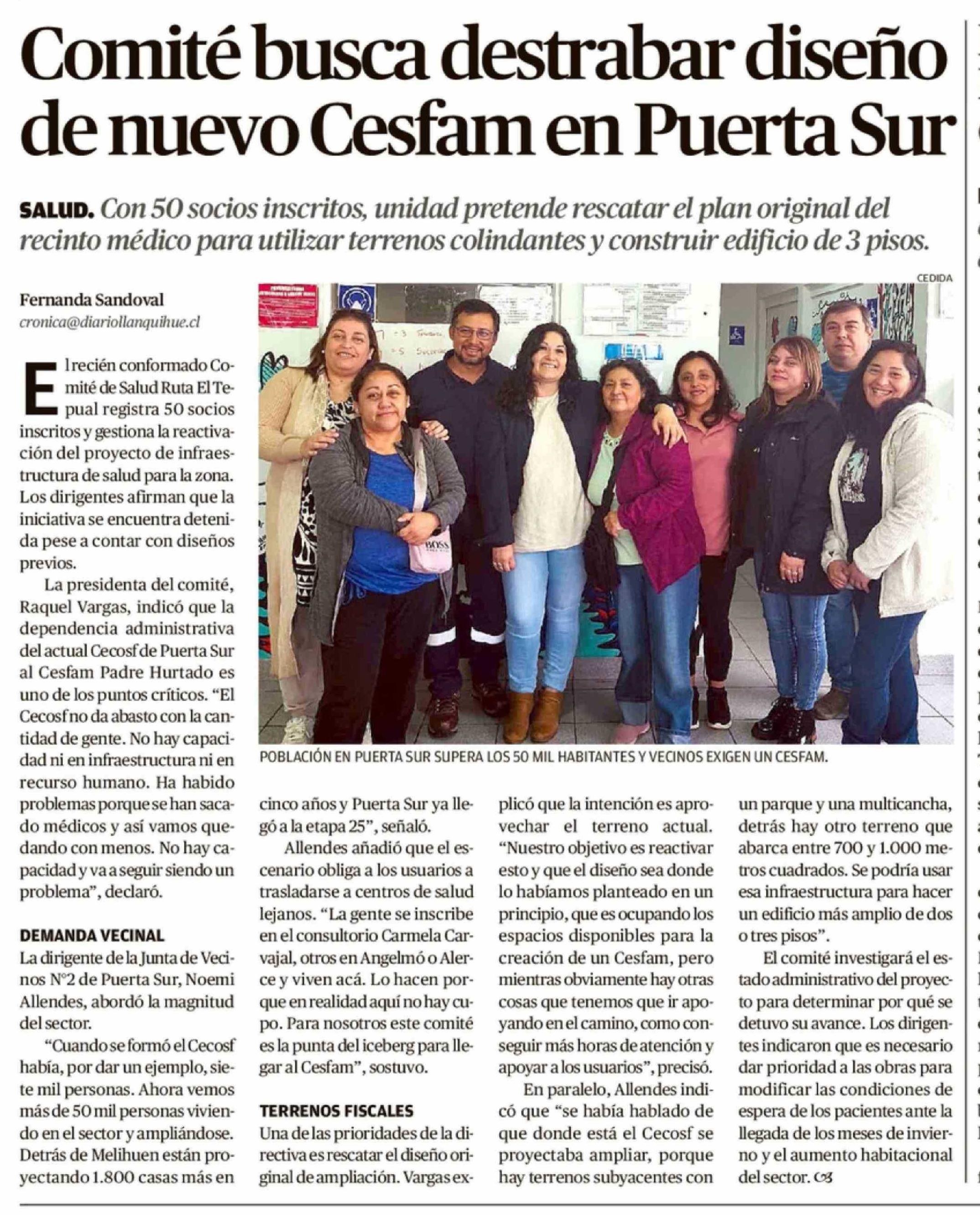 Comité busca destrabar diseño de nuevo Cesfam en Puerta Sur