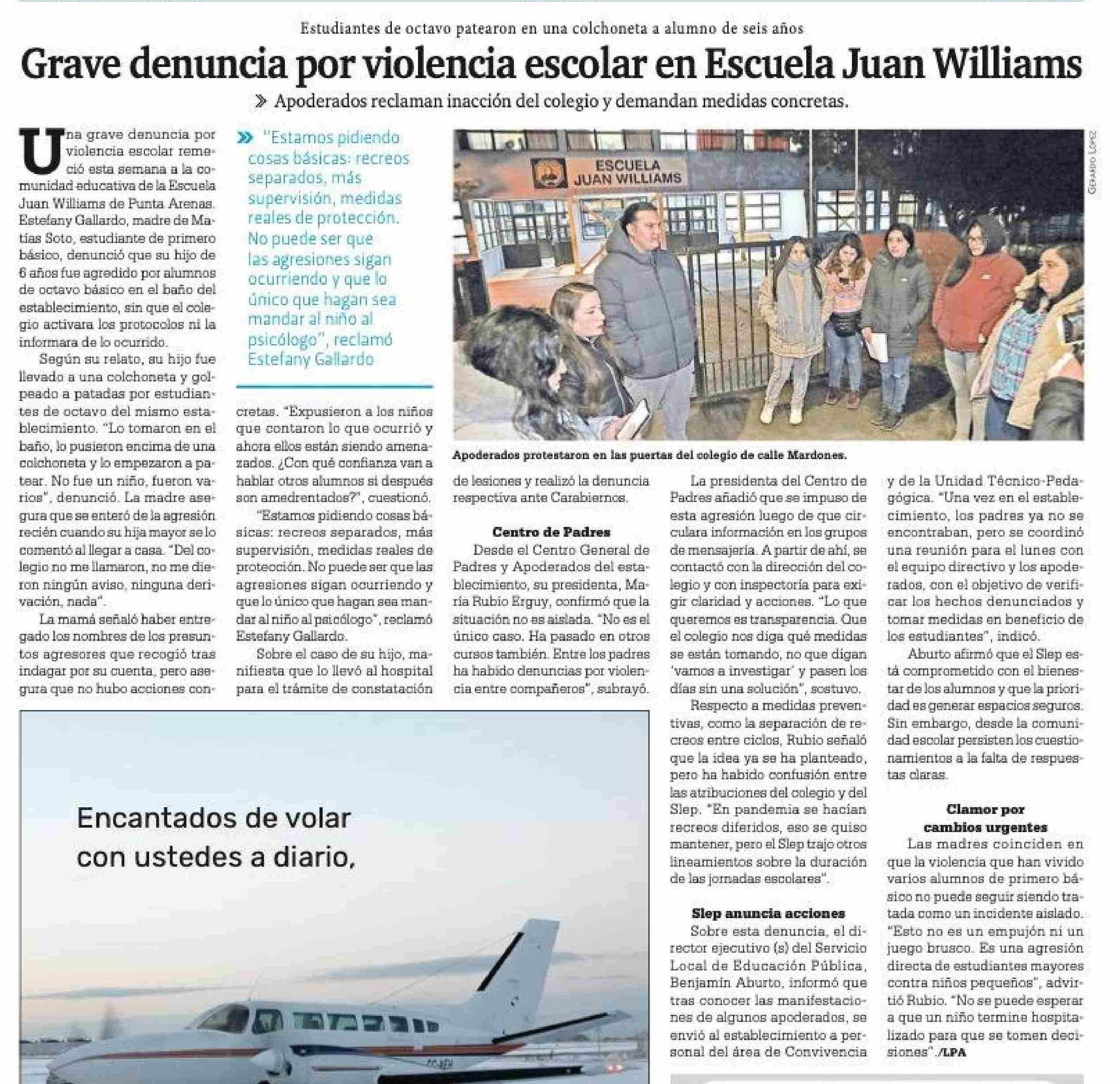 Grave denuncia por violencia escolar en Escuela Juan Williams