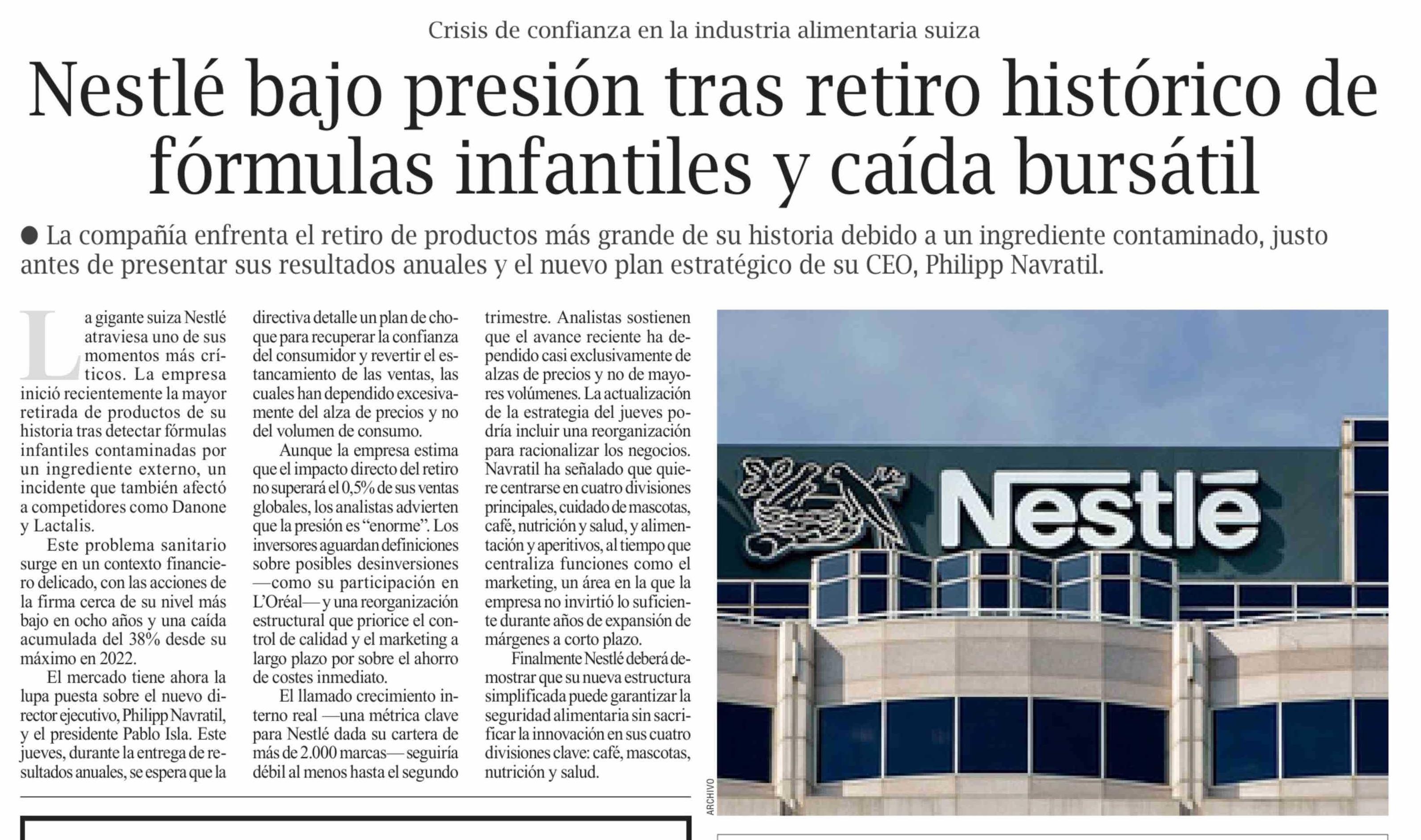 Nestlé bajo presión tras retiro histórico de fórmulas infantiles y caída bursátil