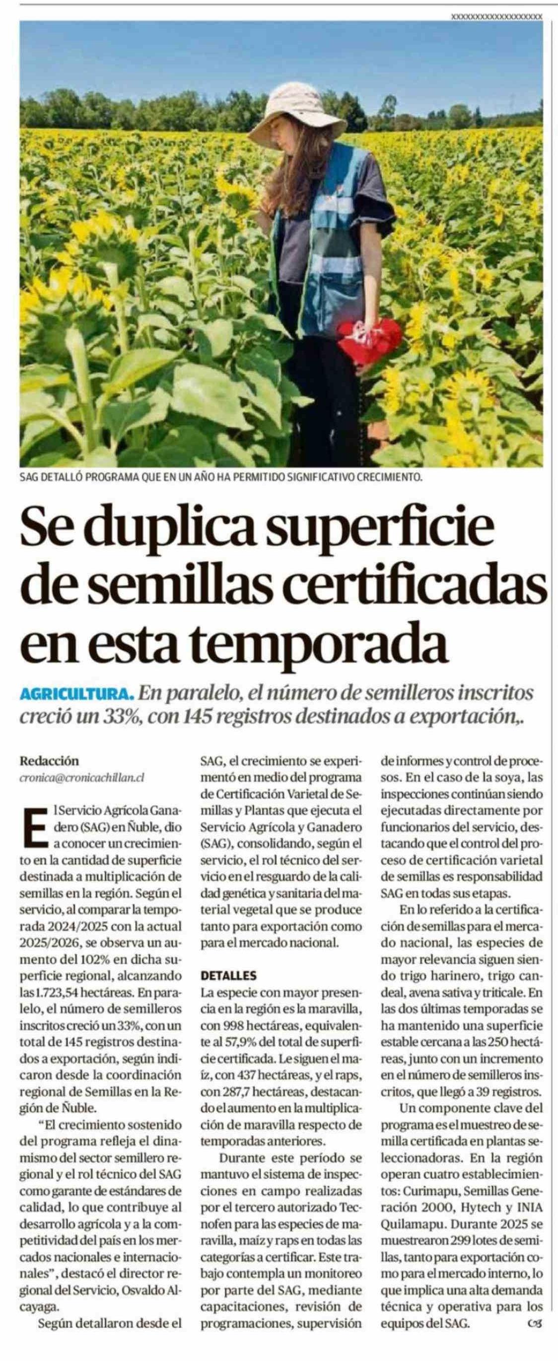 Se duplica superficie de semillas certificadas en esta temporada