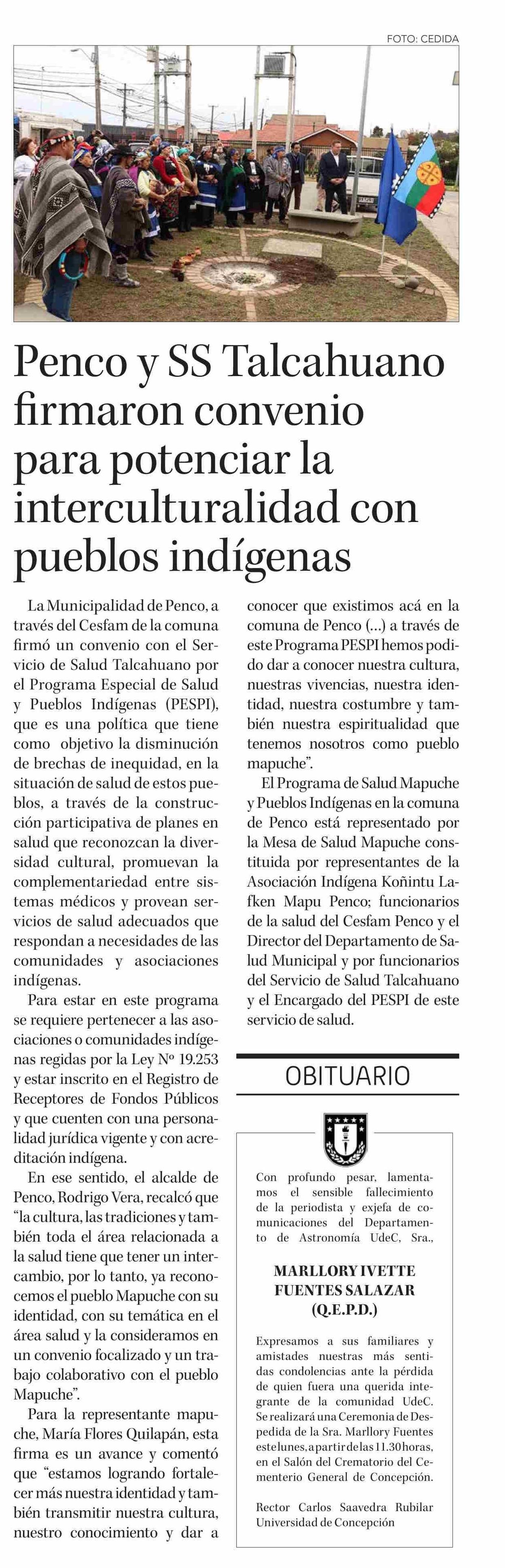 Penco y SS Talcahuano firmaron convenio para potenciar la interculturalidad con pueblos indígenas