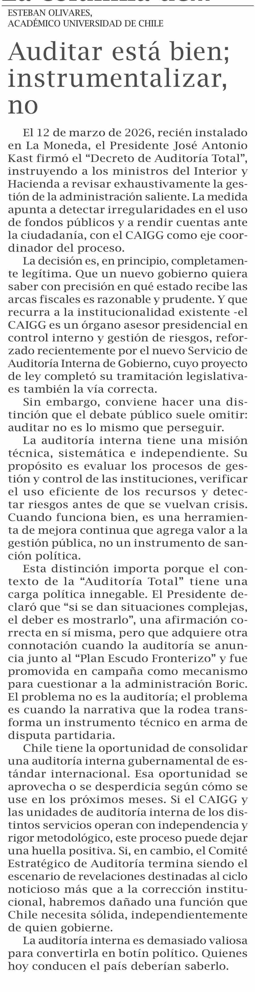 Columnas de Opinión: Auditar está bien; instrumentalizar,