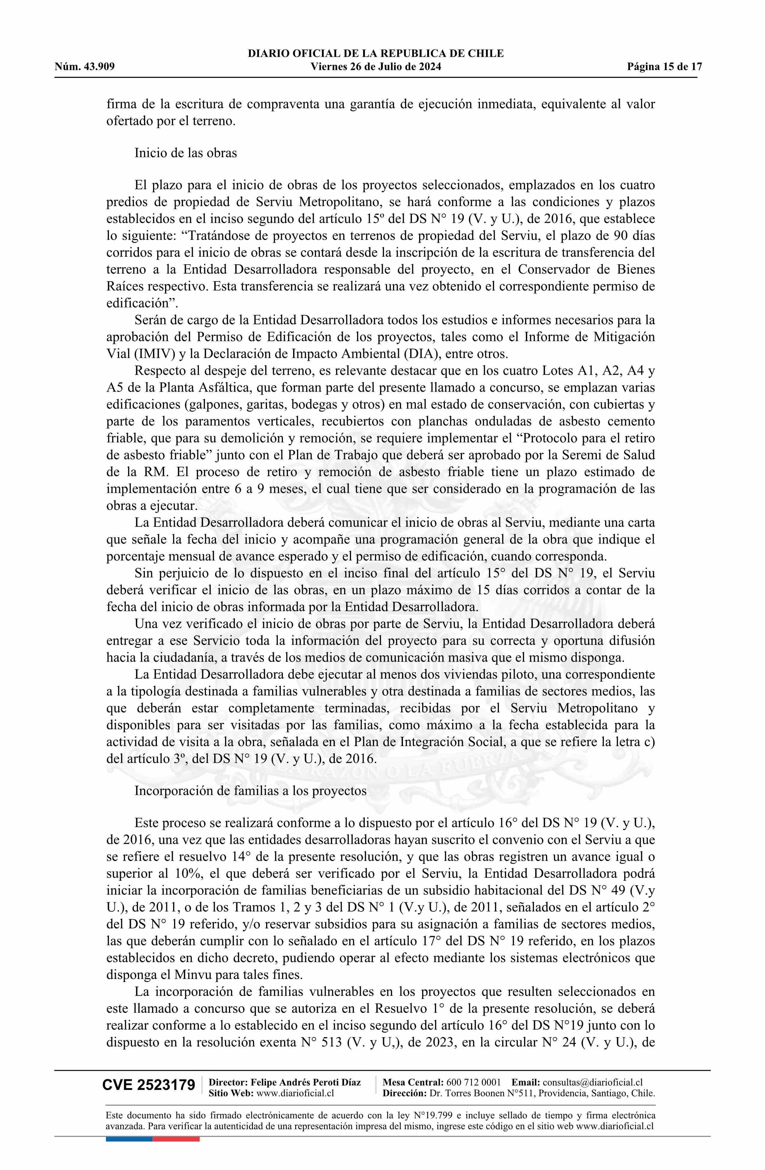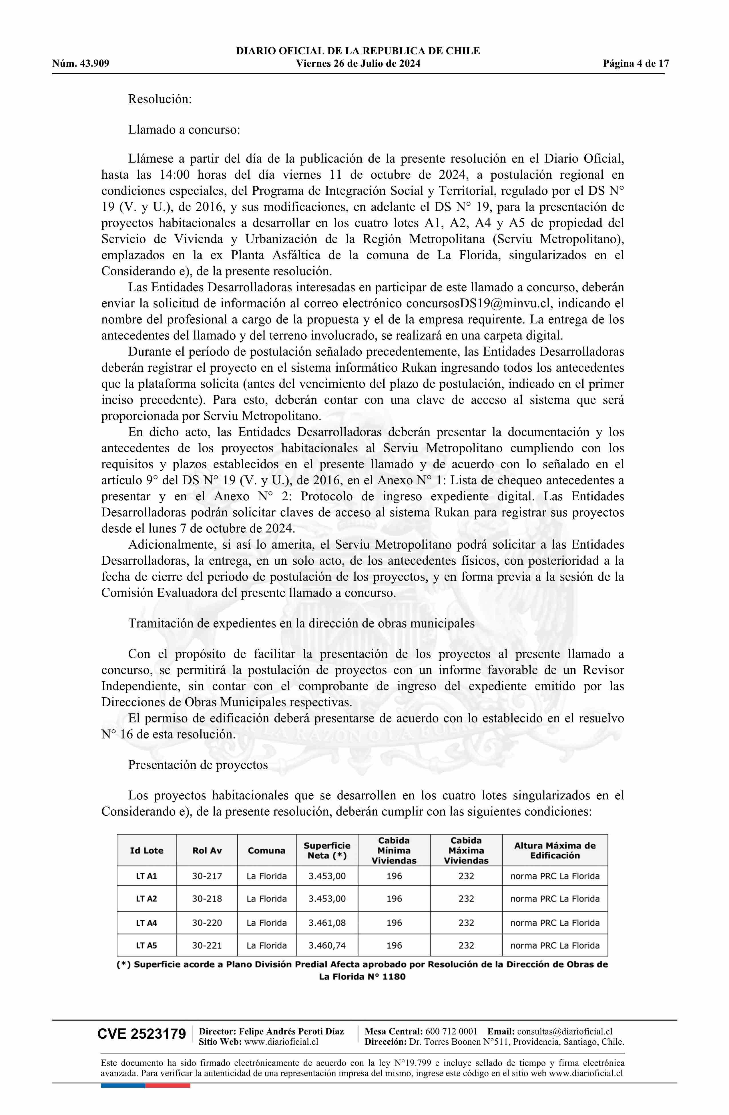 | Título: | Resolución exenta número 1.036, de 2024.- Llama a postulación en condiciones especiales para la presentación de proyectos habitacionales del Programa de Integración Social y Territorial, regulado por el decreto N° 19, de 2016, y sus modificaciones, en los lotes A1, A2, A4 y A5 del loteo Planta Asfál |