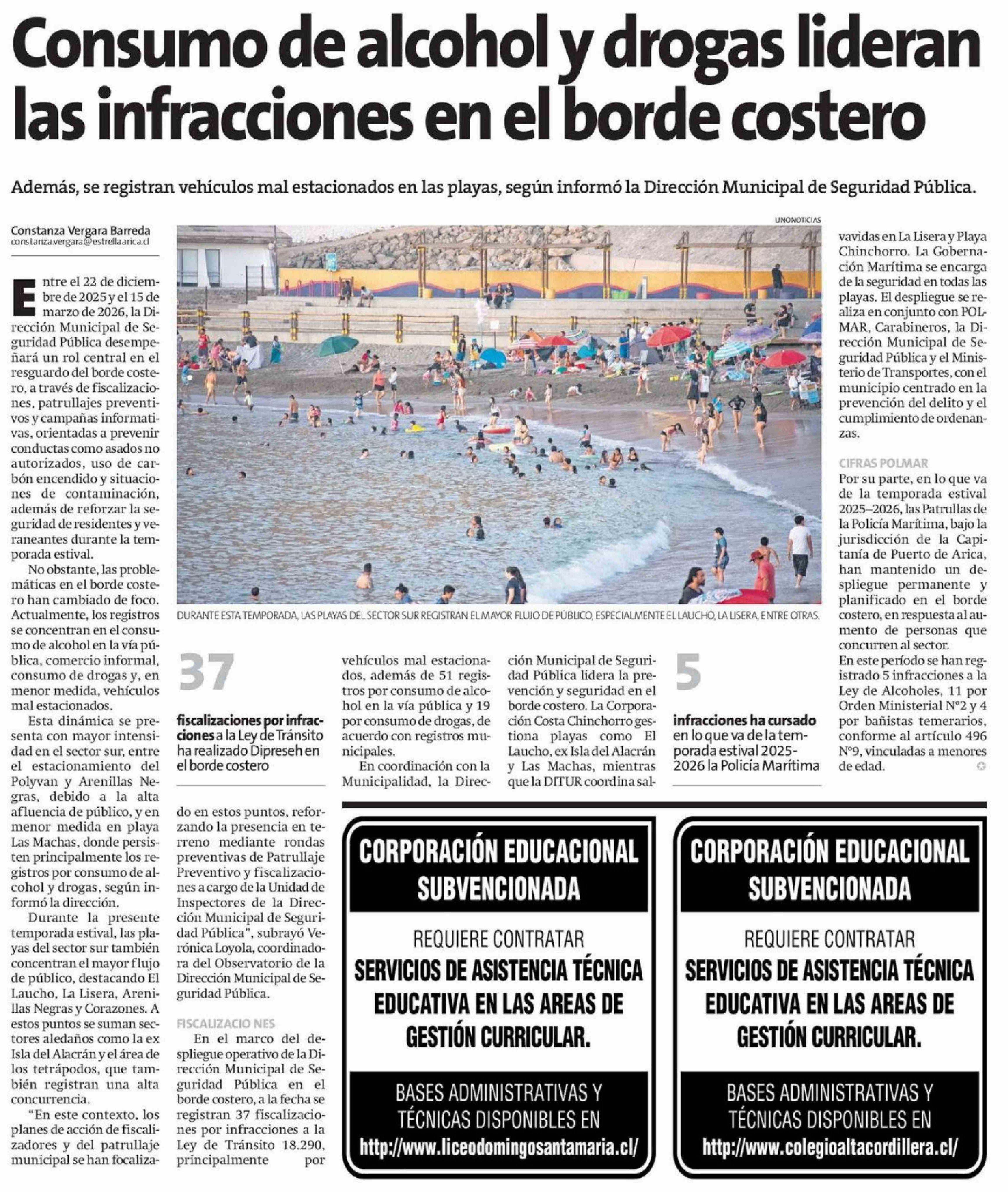 Consumo de alcohol y drogas lideran las infracciones en el borde costero