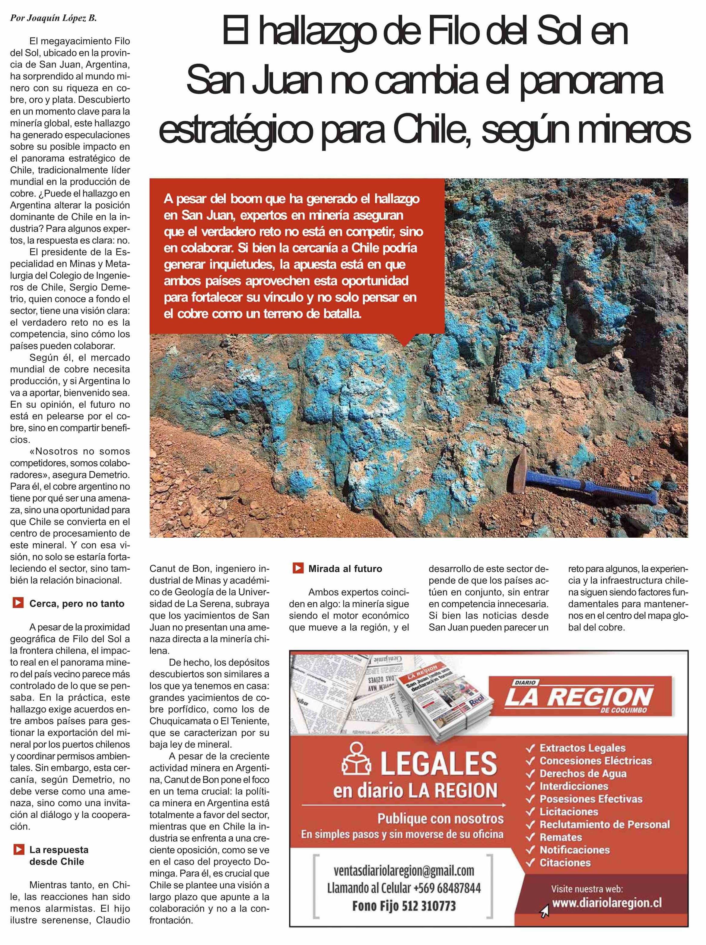 El hallazgo de Filo del Sol en San Juan no cambia el panorama estratégico para Chile, según mineros