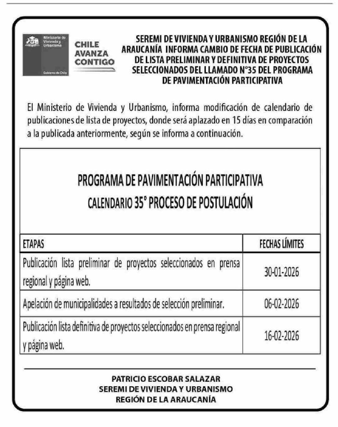 Extractos: Ministerio do Vivienday Urbanismo