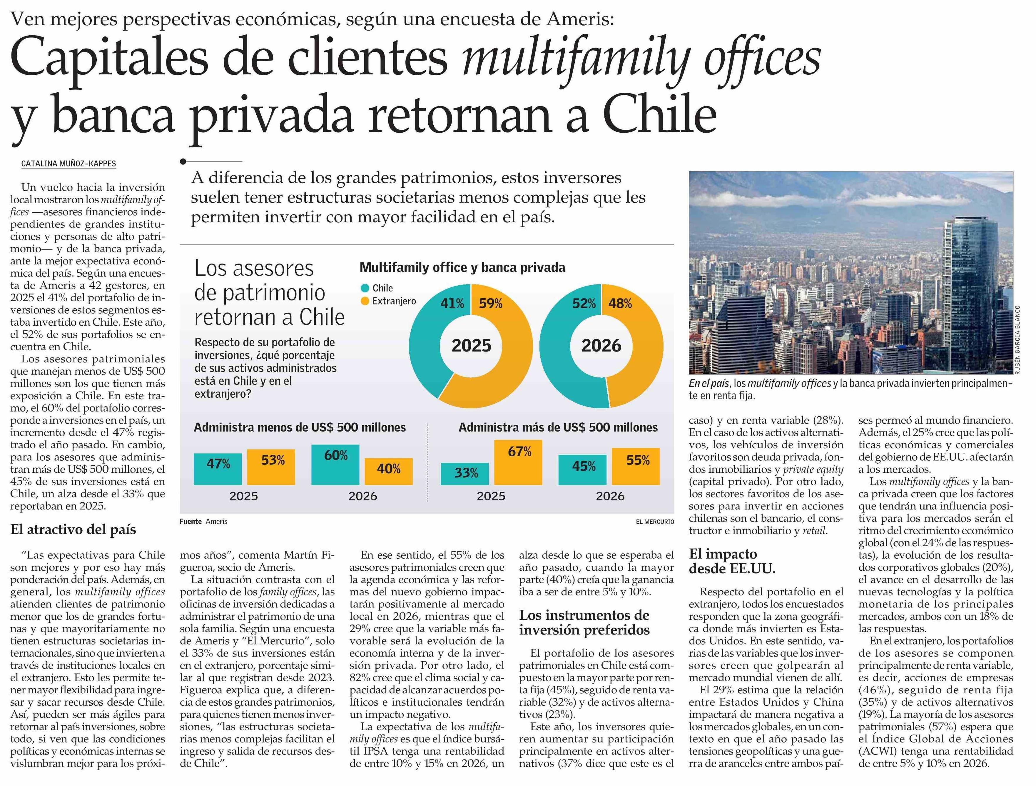 Capitales de clientes multifamily offices y banca privada retornan a Chile