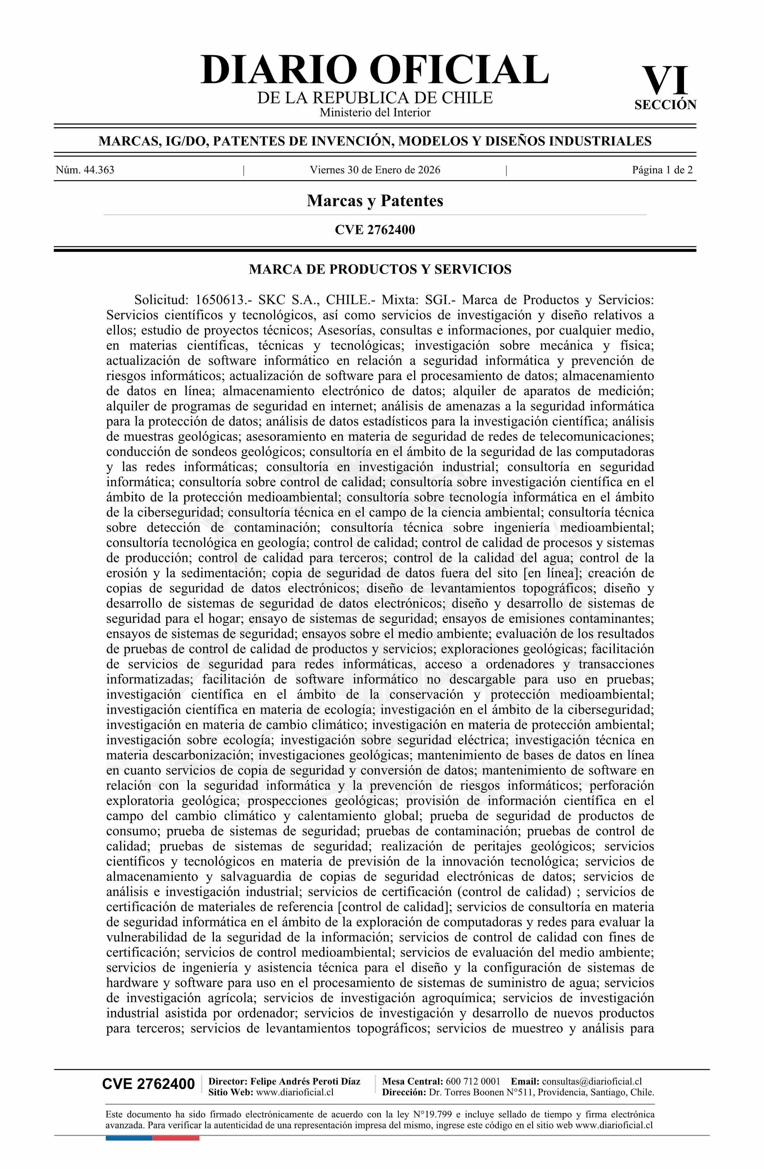 Diario Oficial Edición Electrónica (Diario Oficial de Chile - 6 Marcas Y Patentes)