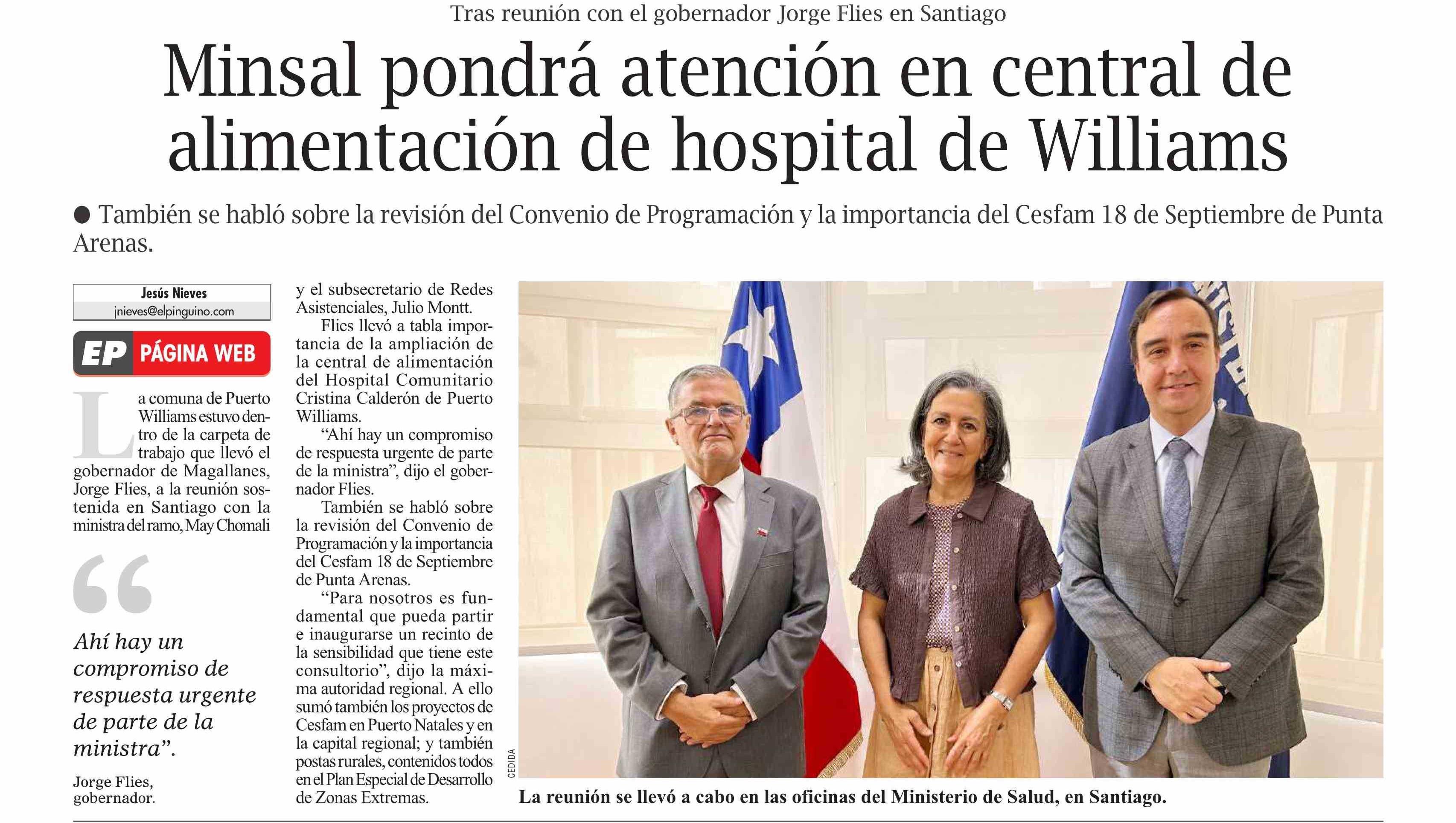 Minsal pondrá atención en central de alimentación de hospital de Williams