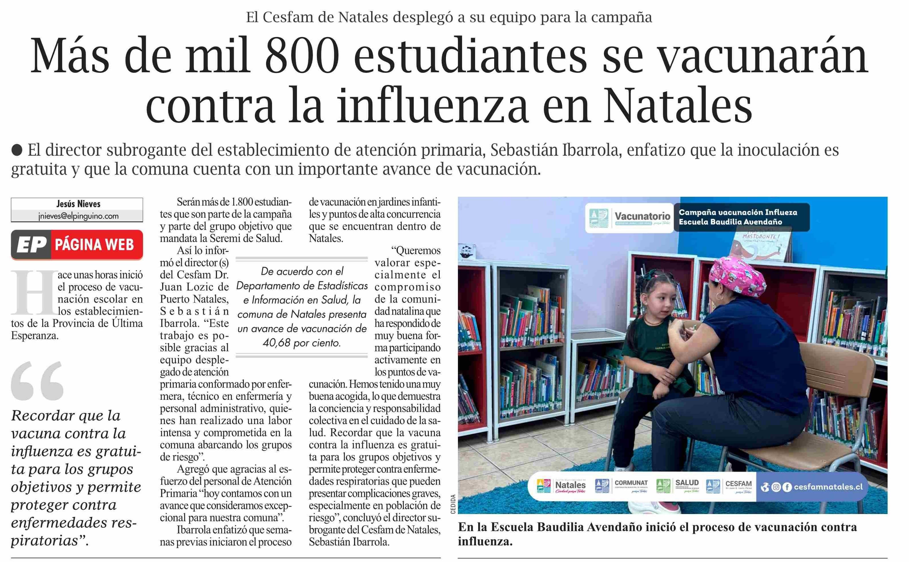Título: Más de mil 800 estudiantes se vacunarán contra la influenza en Natales