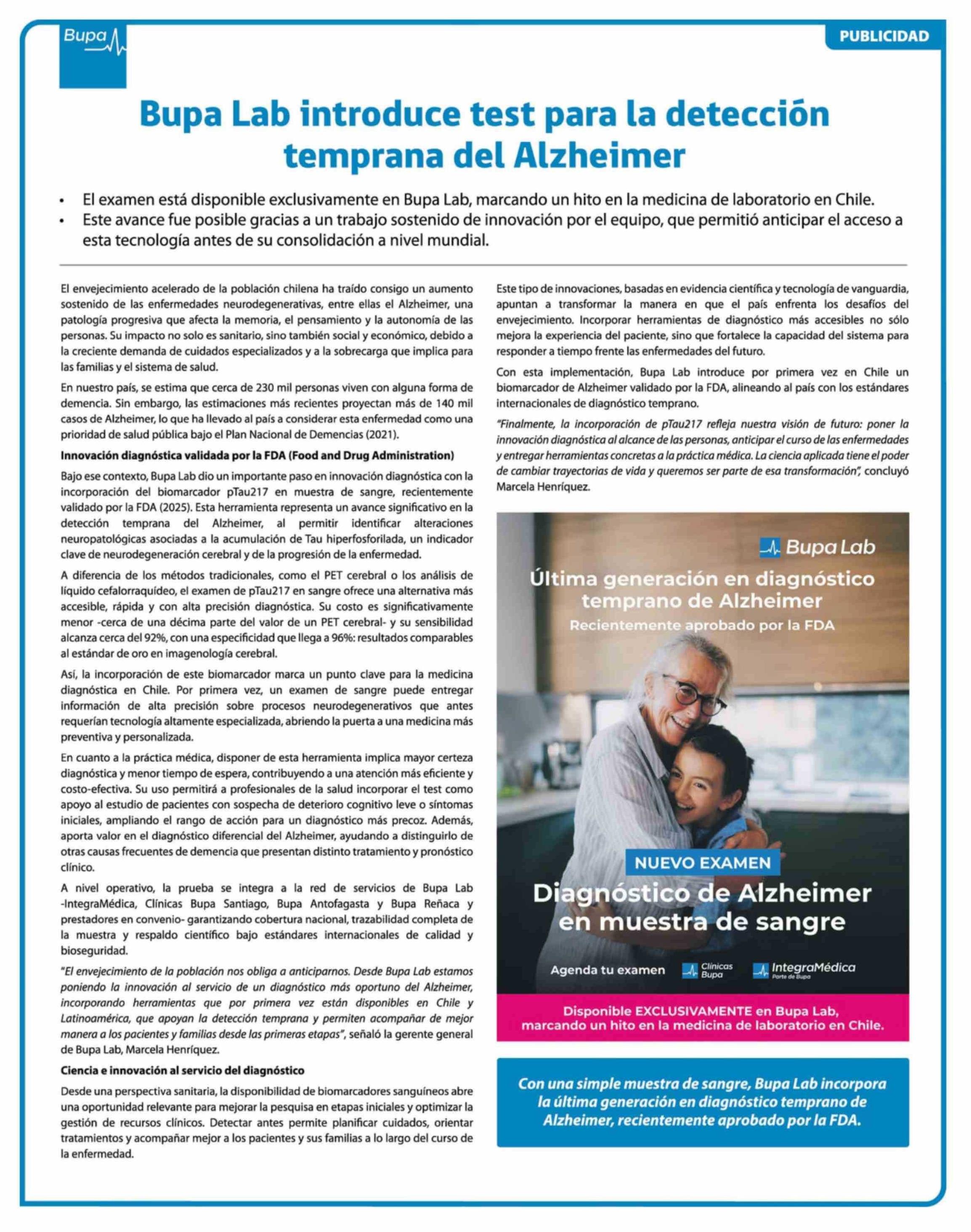 Bupa Lab introduce test para la detección temprana del Alzheimer