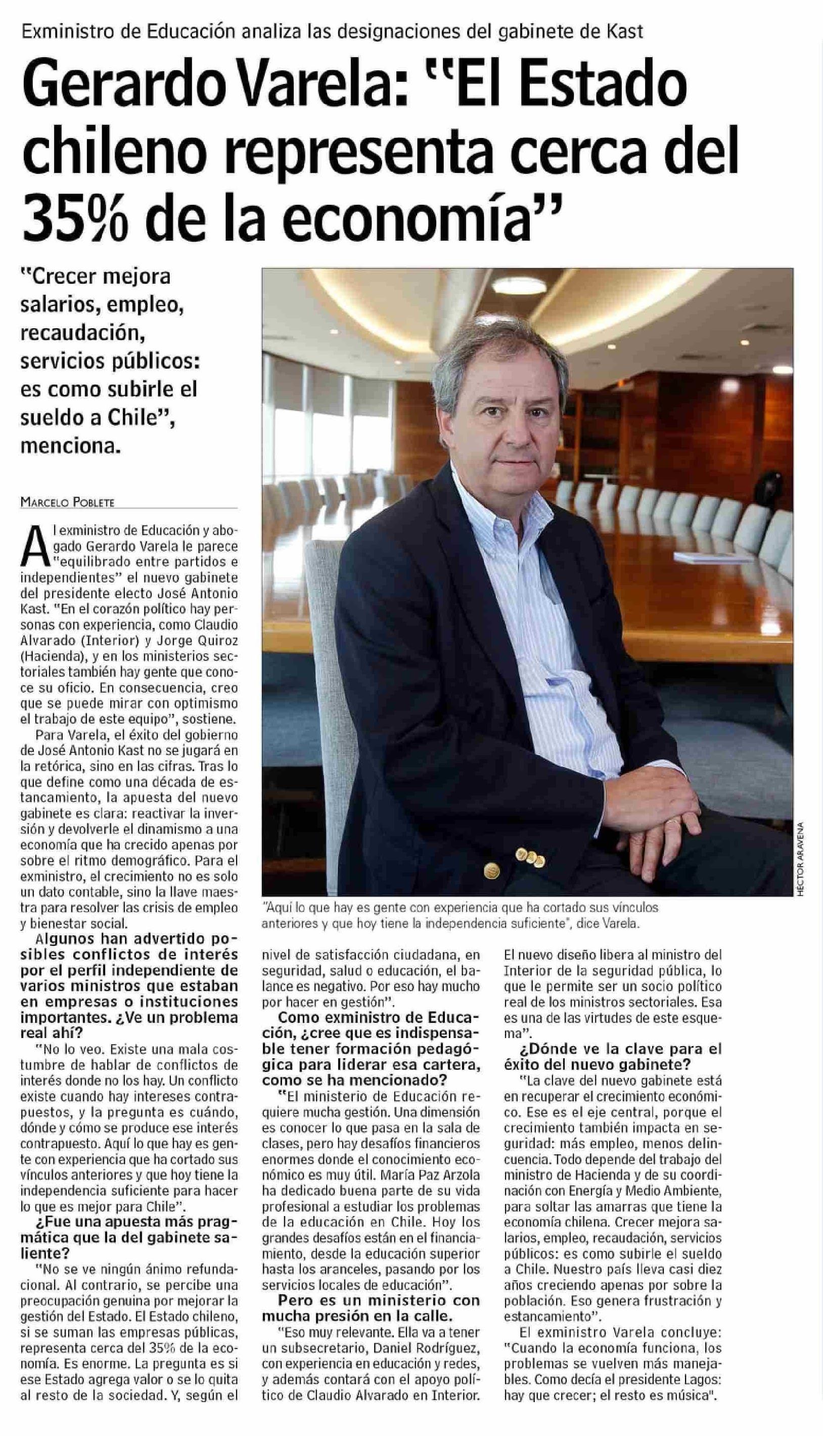 Gerardo Varela: "El Estado chileno representa cerca del 35% de la economía"