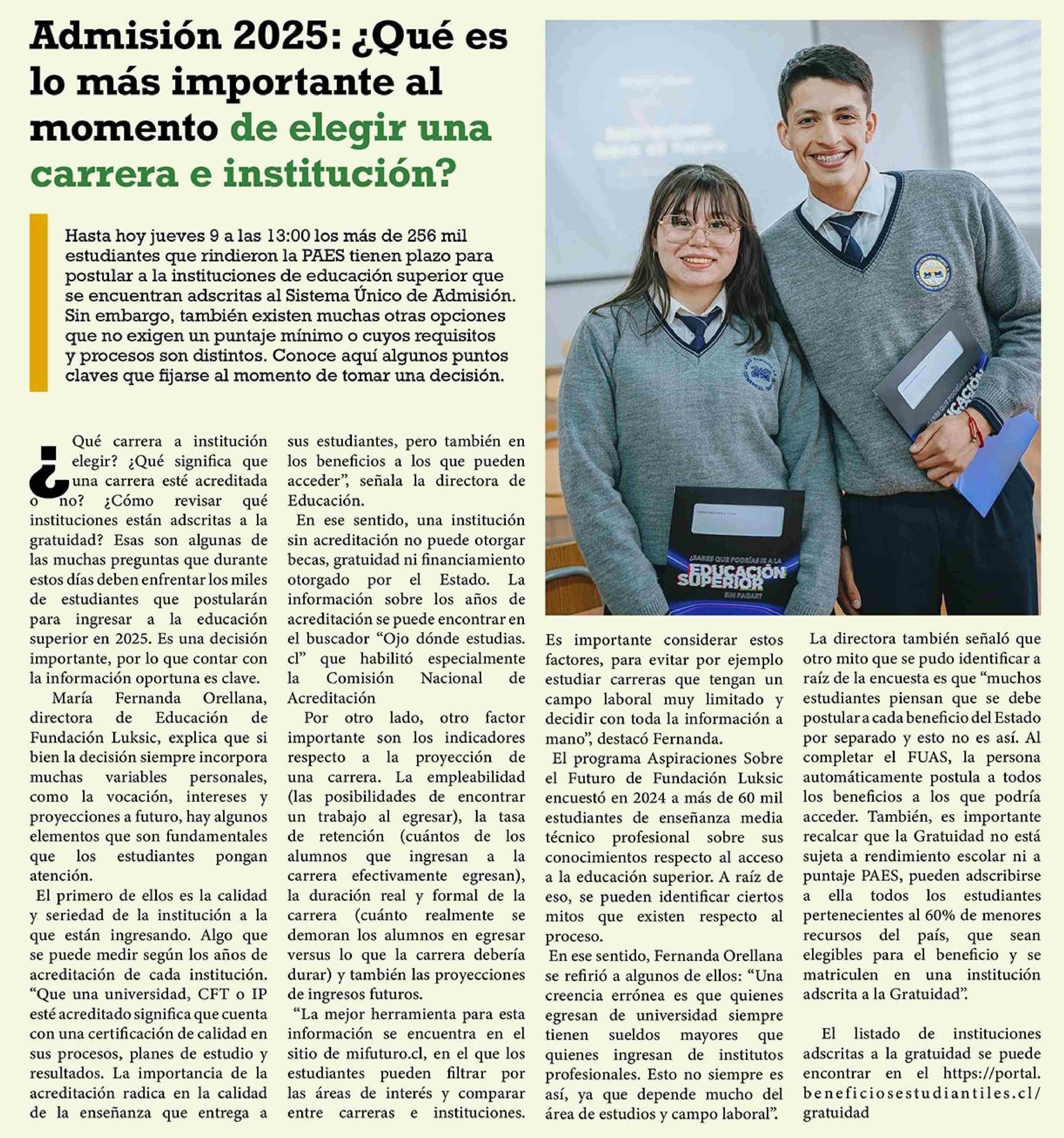 Admisión 2025: ¿Qué es lo más importante al momento de elegir una carrera e institución?