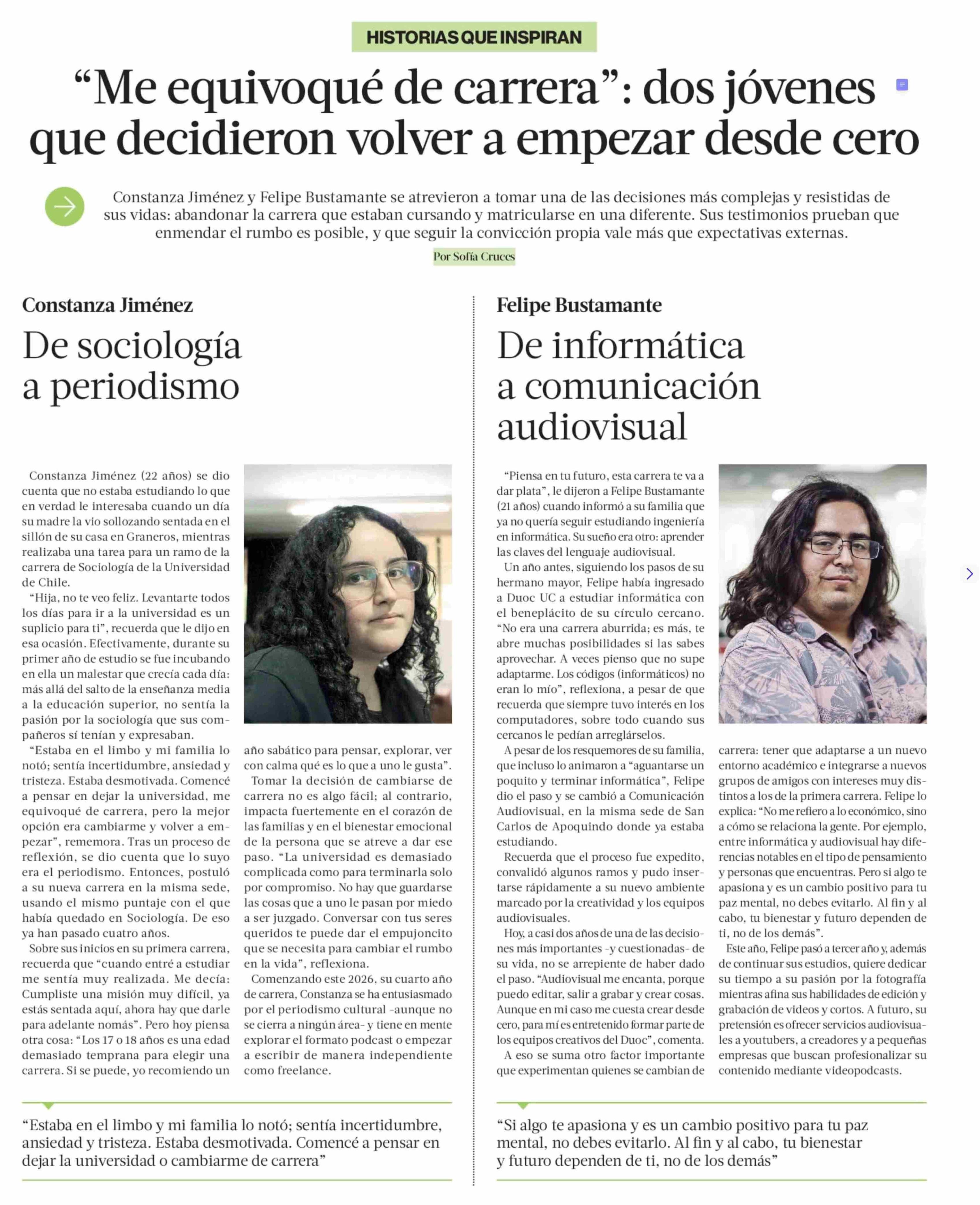 “Me equivoqué de carrera”: dos jóvenes que decidieron volver a empezar desde cero